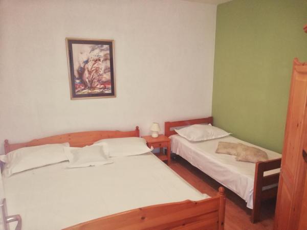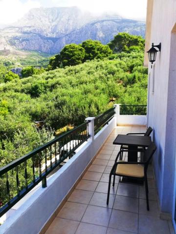 Appartamenti attrezzati in una zona tranquilla e silenziosa di Tucepi sopra la strada principale, abbastanza lontano da non poter sentire il rumore delle auto che passano. Appartamento con vista si trova al secondo piano, ampio balcone, vista mare e monti, cucinino, camera da letto, wc, adatto per coppie. Il bilocale si trova al piano seminterrato, senza vista mare, di due locali climatizzati, cucina attrezzata, bagno con vasca, salottino esterno, giardino, gradevole per la calura estiva e adatto alle famiglie. Ogni appartamento è dotato di aria condizionata, ed è necessario utilizzare le scale. La spiaggia e il centro sono a pochi minuti a piedi, connessione internet gratuita e parcheggio. Nota, il parcheggio non è adatto a furgoni, camper e veicoli con rimorchio.