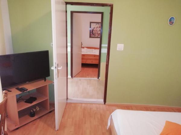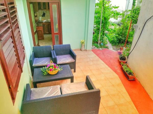 La sistemazione è come l'immagine, ma che immagine non mostra che il senso della perfezione quando si sta seduti sulla terrazza di sera, sorseggiando il vostro drink preferito e guardare il tramonto e la bella dell'Adriatico. Non appena abbiamo lasciato, ma ci manca la terrazza. I padroni di casa sono persone molto cordiali e simpatiche. La spiaggia si trova vicino all'appartamento, a 5 minuti a piedi. Manca lavastoviglie, o possa in qualche modo spingere e senza di essa un paio di giorni. calda raccomandazione trascorrere le vostre vacanze qui.