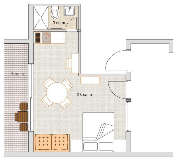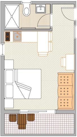 Monolocale per due persone con letto aggiuntivo (28 m2)