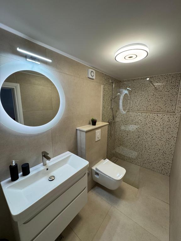 Appartamenti BUŠELIĆ sono appartamenti completamente e modernamente attrezzati. Si trovano a soli 70 metri dal mare. La spiaggia è fatta di piccoli ciottoli ed è decorata con alberi di pino che creano una piacevole ombra. Il parcheggio è di fronte alla casa e c'è la possibilità di usare il garage. Ospiti soddisfatti e un gran numero di vecchi ospiti garantiscono la qualità offerta dai padroni di casa.