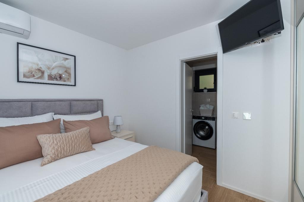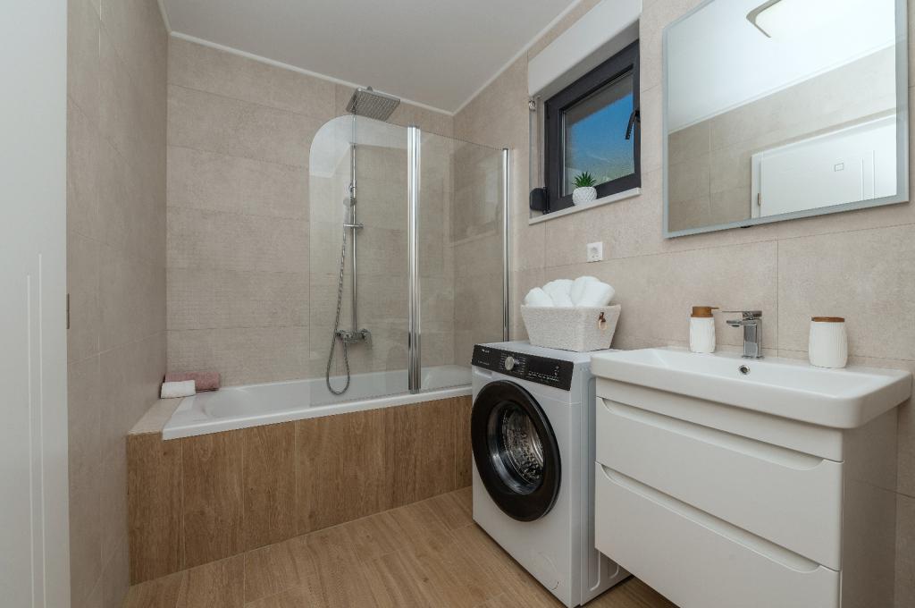Si affitta un appartamento di 100 m², arredato in stile moderno e completamente attrezzato, situato a Tučepi, ideale per una vacanza in famiglia. L'appartamento è composto da due camere da letto, due bagni, un ampio soggiorno con cucina e zona pranzo e un'ampia terrazza con vista panoramica sul mare e sulle isole. L'appartamento è dotato di aria condizionata, Wi-Fi gratuito, TV, lavatrice e lavastoviglie. Il parcheggio è disponibile di fronte alla proprietà. La spiaggia è raggiungibile in soli 5 minuti a piedi. Se cercate un alloggio confortevole con un mare cristallino e una splendida passeggiata, il nostro appartamento vi offrirà la vacanza perfetta.