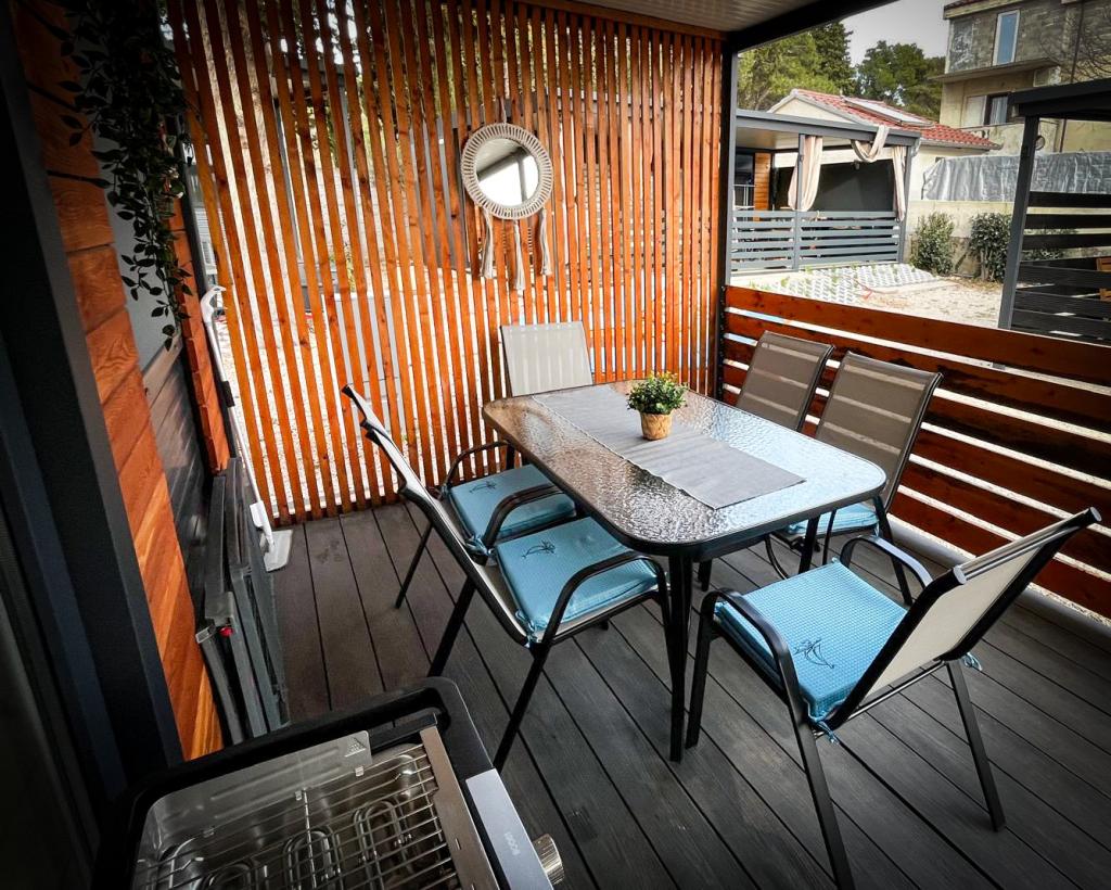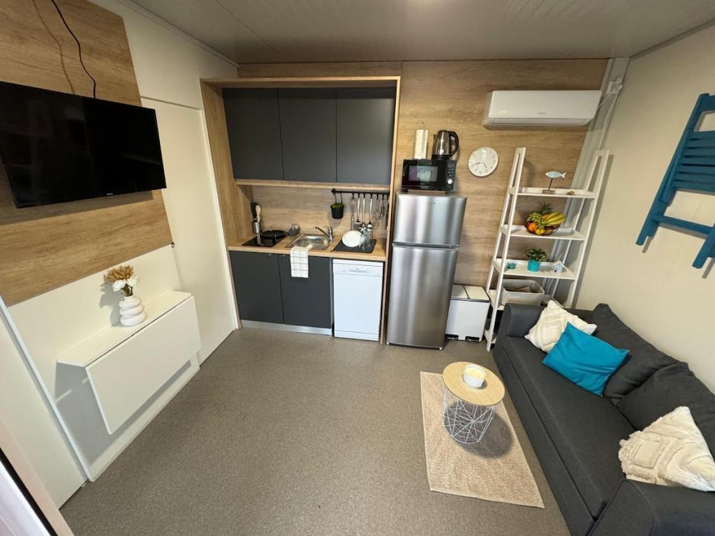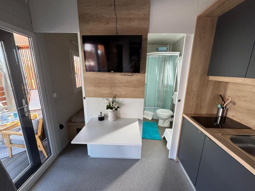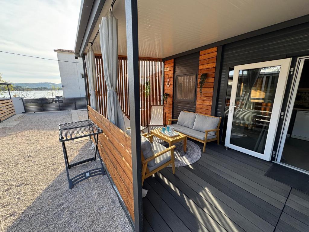 Le nostre case mobili Marea sono progettate per rendere la vostra vacanza spensierata, confortevole e ricca di momenti di relax. Ogni casa è arredata con cura e completamente attrezzata per un piacevole soggiorno per famiglie o coppie in cerca di privacy, pace e tutti i comfort di una moderna casa al mare. Si trovano in un piccolo campeggio familiare recintato a soli 30 metri dalla spiaggia, nella tranquilla cittadina di Turanj, immersa nel verde e in un'atmosfera mediterranea. Dotazioni e servizi di entrambe le case: Due camere da letto con letti matrimoniali Cucina completamente attrezzata (induzione, lavastoviglie, grande frigorifero) Soggiorno: divano letto, smart TV, Wi-Fi (Starlink), aria condizionata Bagno: doccia, asciugamani, asciugacapelli Ampia terrazza con mobili e sedie a sdraio Parcheggio custodito (Marea 1 - Piazzola numero 3 | Marea 2 - Piazzola numero 5) Regalo di benvenuto Le case sono climatizzate e disponibili tutto l'anno, il che le rende la scelta ideale per una vacanza estiva, ma anche per una tranquilla fuga invernale al mare.
