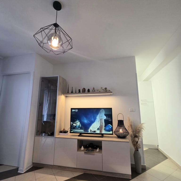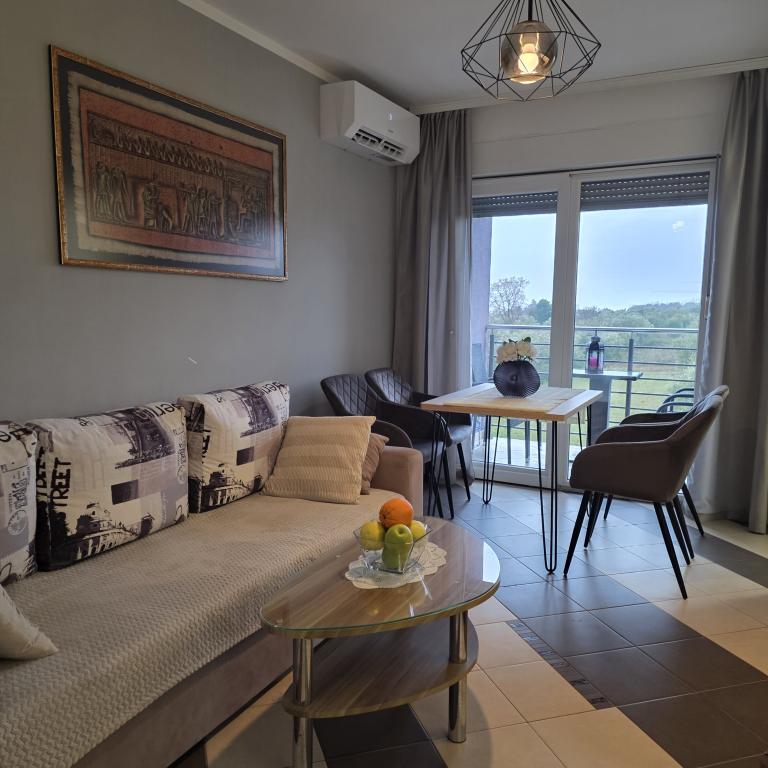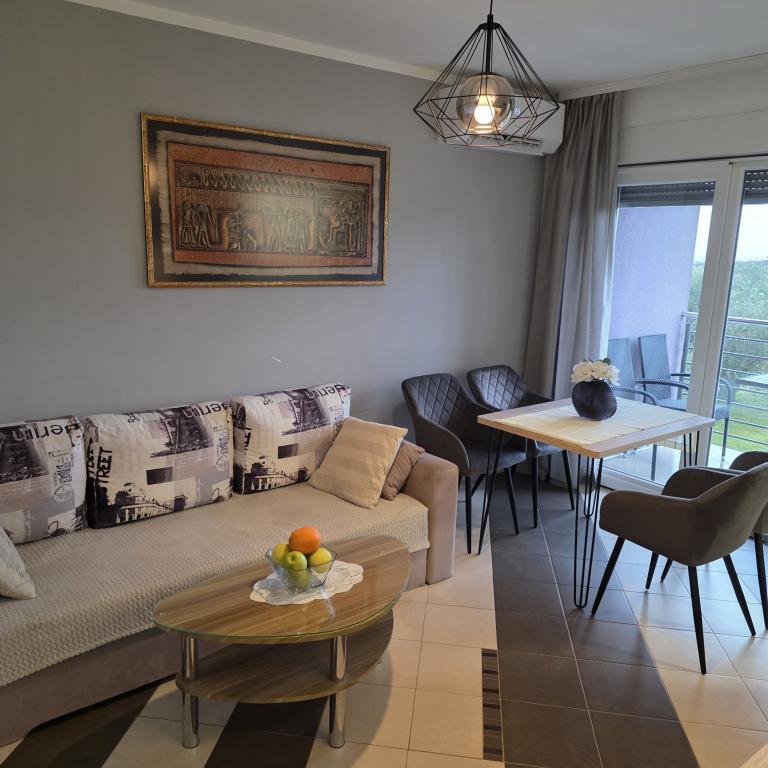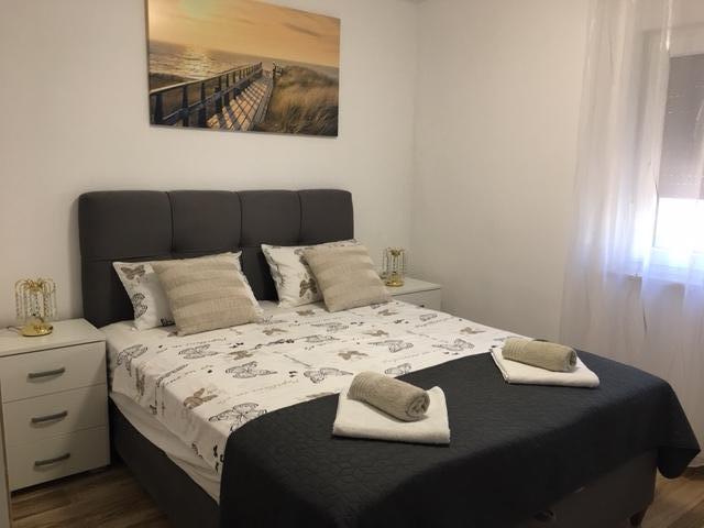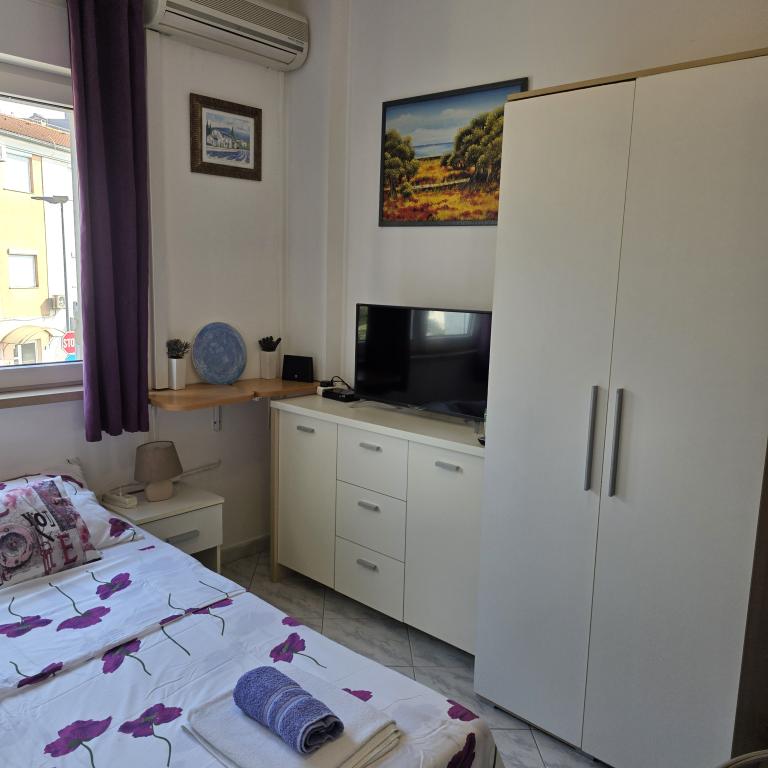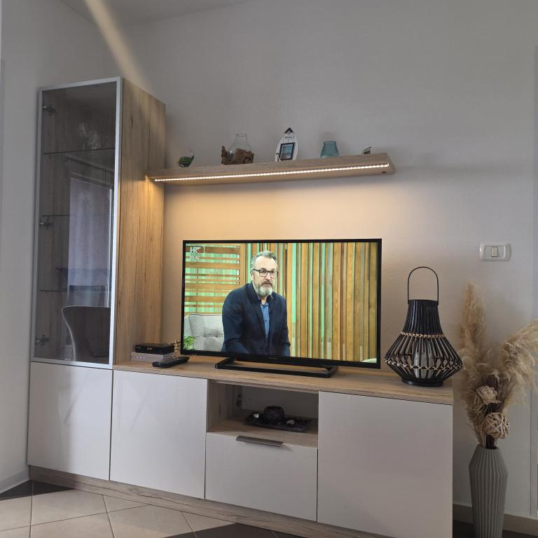 Gli appartamenti Mirella 4 si trovano nella residenza di recente costruzione Lavanda con vista sul mare e una splendida vista sul tramonto. Per il mare e la bellissima spiaggia di sabbia è a soli 150 metri. Negozi, panetteria e ristoranti a 200m. Al centro di Umago 3 km. Lungo il mare c'è una passeggiata fino al centro di Umago e la possibilità è il trasporto in treno turistico. Gli appartamenti sono climatizzati e dotati di tutti gli elettrodomestici. Bagno con doccia idromassaggio, lavatrice, asciugacapelli, ferro da stiro. Cucina con lavastoviglie, forno a microonde, macchina per il caffè, bollitore grande frigorifero con congelatore e tutto il resto per far sentire l'ospite a casa. Internet gratuito e parcheggio custodito sono disponibili. Il prezzo include l'uso della piscina, sedie a sdraio, doccia, due posti, tavolo e sedie nella parte coperta della terrazza a bordo piscina. Grazie per aver scelto Apartments Mirella, spero che in cambio soddisferemo i vostri desideri durante il vostro soggiorno nei nostri appartamenti. Il nostro obiettivo è la vostra soddisfazione e raccomandazione. Cari ospiti, benvenuti negli appartamenti Mirella!