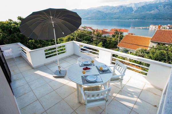 Quest'anno casa-coperture e facciate restaurate con un eccellente isolamento termico, si trova in una zona tranquilla Vinjerca, immersa nel verde, situata a circa 100 m dal mare. L'appartamento si trova al primo piano. Dalla terrazza, c'è una bella vista della città, il porto, il mare. La vista si estende per diversi chilometri ad est e ad ovest, in gran parte del Canale di Velebit, e, naturalmente, il monte Velebit molto. L'appartamento dispone di un ampio soggiorno all'interno del quale è una parte della sala da pranzo e cucina completamente attrezzata. La camera è dotata di una telecamera con una serie di canali locali e satellitari, divano spazioso, che è un letto supplementare per una terza persona. Nella camera da letto è un letto matrimoniale 180 x 200 cm, armadio, grande specchio, piccola credenza. In un piccolo bagno con wc è tutto ciò che serve. Tutta la casa ha la connessione Wi-Fi a Internet. In aggiunta o in prossimità della casa è un parcheggio. Gli appassionati di sport possono in strade circostanti ad andare in bicicletta, mountain bike, con un salto ponte, bungee jumping e il climing libera Paklenici-.