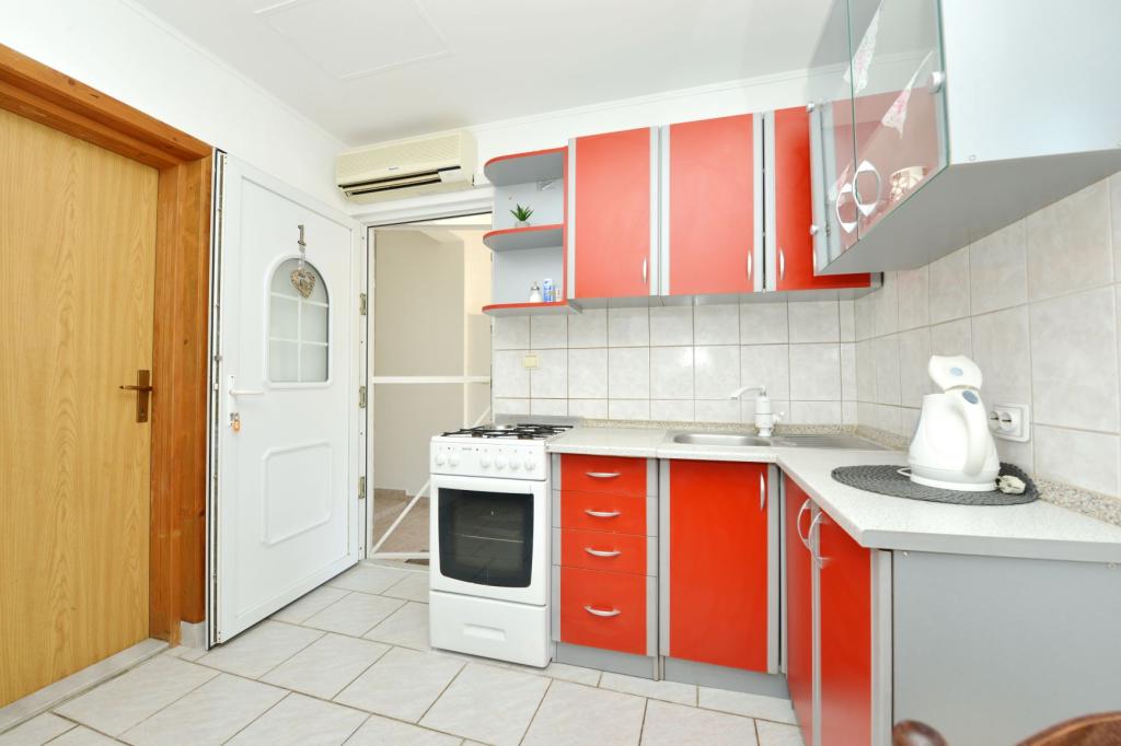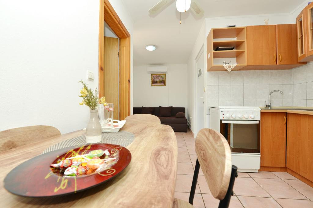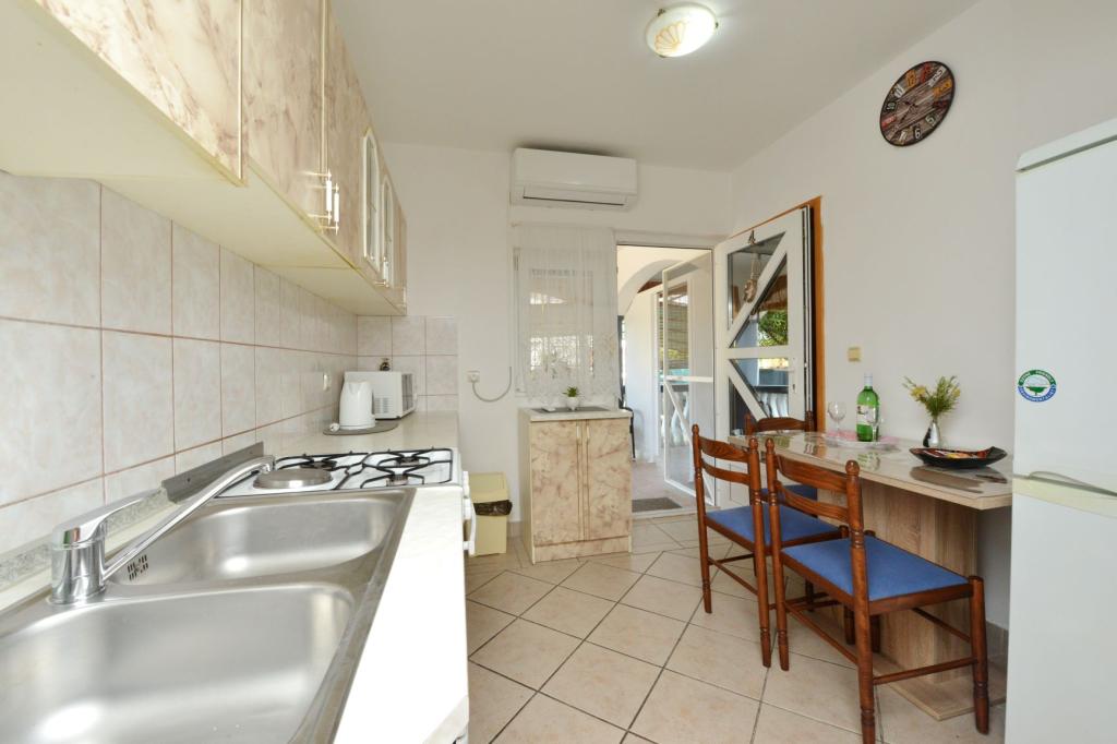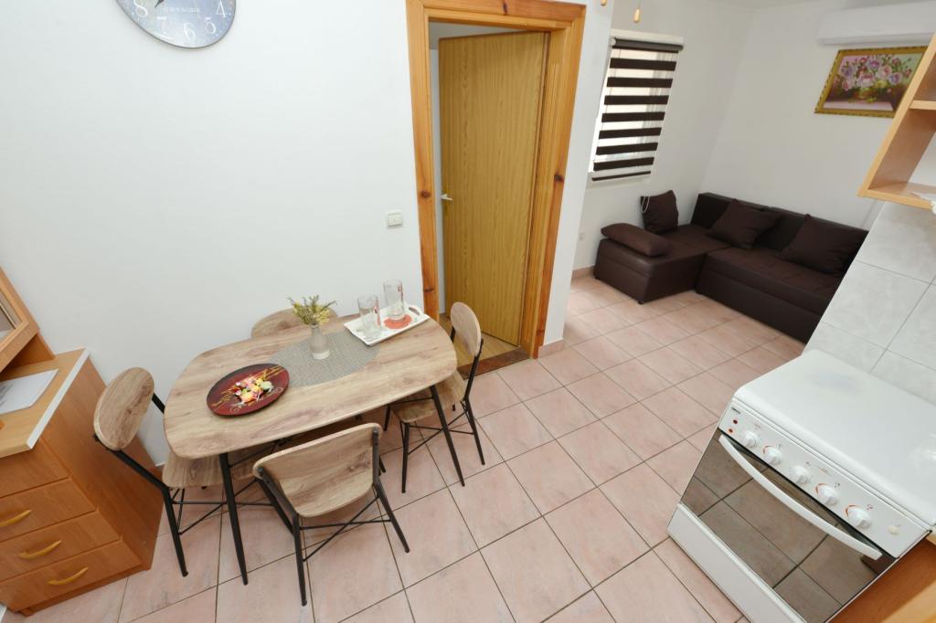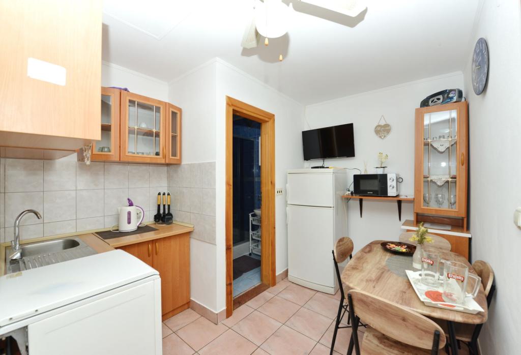 Appartamento completamente arredato in una zona tranquilla dell'isola, per due persone, a 100-150 m dal mare, fast food e caffè sulla spiaggia. Possibilità di utilizzare il barbecue. L'appartamento ha una bellissima grande terrazza. La posizione è particolarmente interessante per le famiglie con bambini perché non c'è vita notturna, stand e folle. C'è una ghiacciaia sulla spiaggia con gelato e la possibilità di acquistare mais cotto.