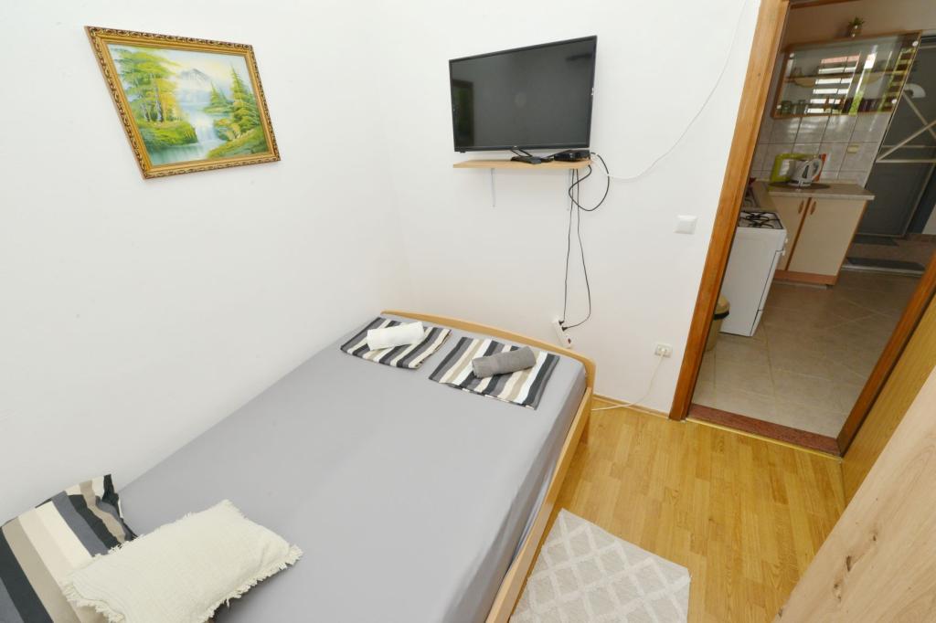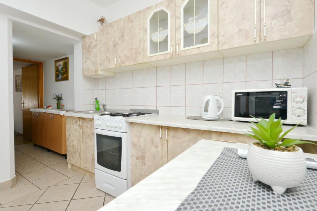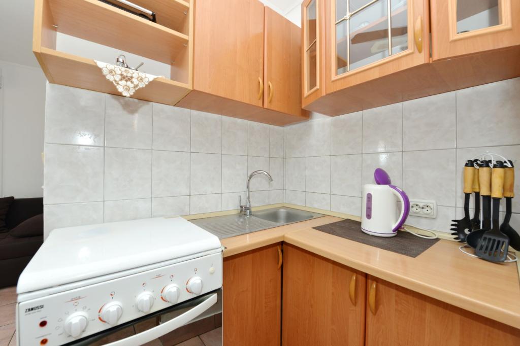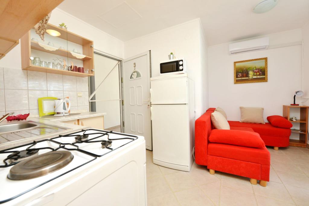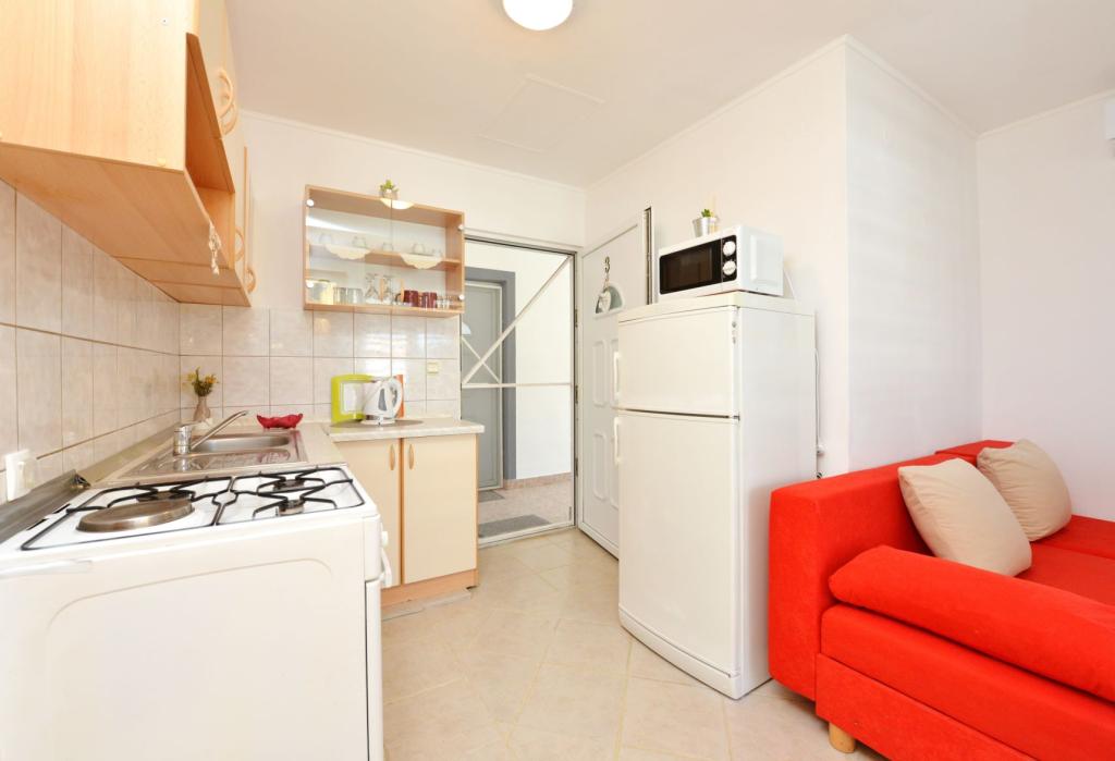 Appartamento completamente arredato in una zona tranquilla dell'isola, per due persone, a 100-150 m dal mare, fast food e caffè sulla spiaggia. Possibilità di utilizzare il barbecue. L'appartamento ha una bellissima grande terrazza. La posizione è particolarmente interessante per le famiglie con bambini perché non c'è vita notturna, stand e folle. C'è una ghiacciaia sulla spiaggia con gelato e la possibilità di acquistare mais cotto.