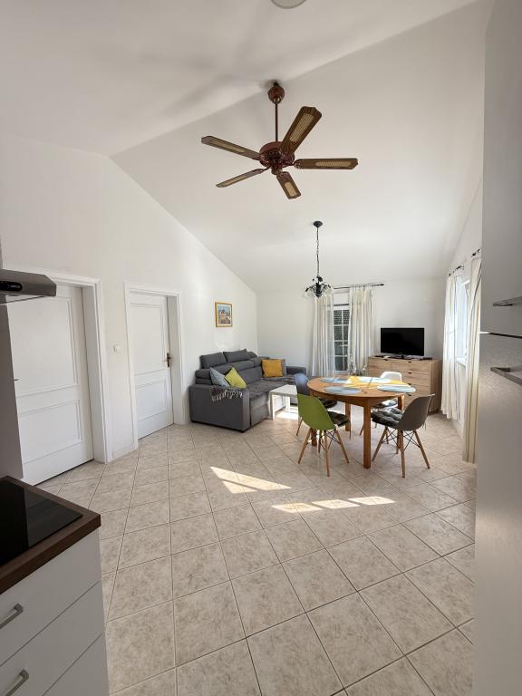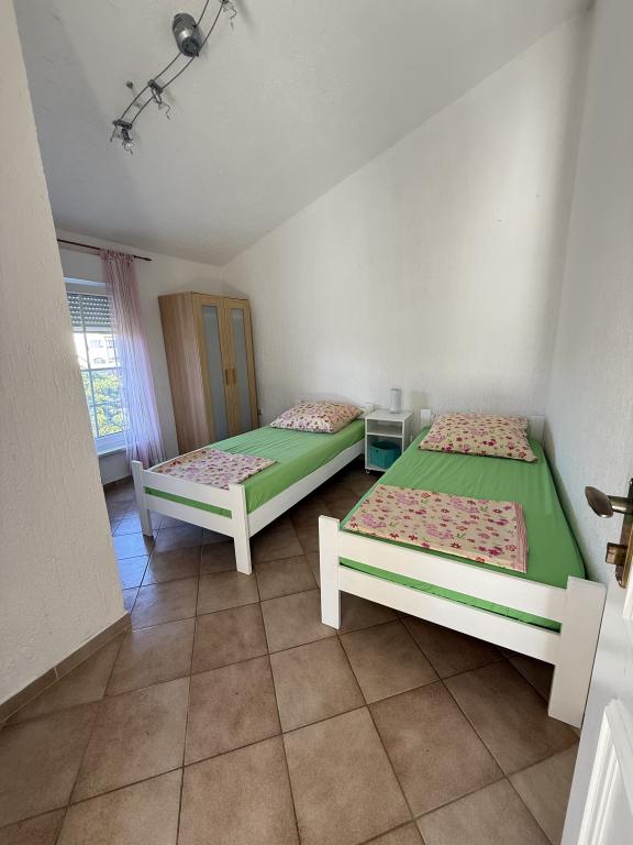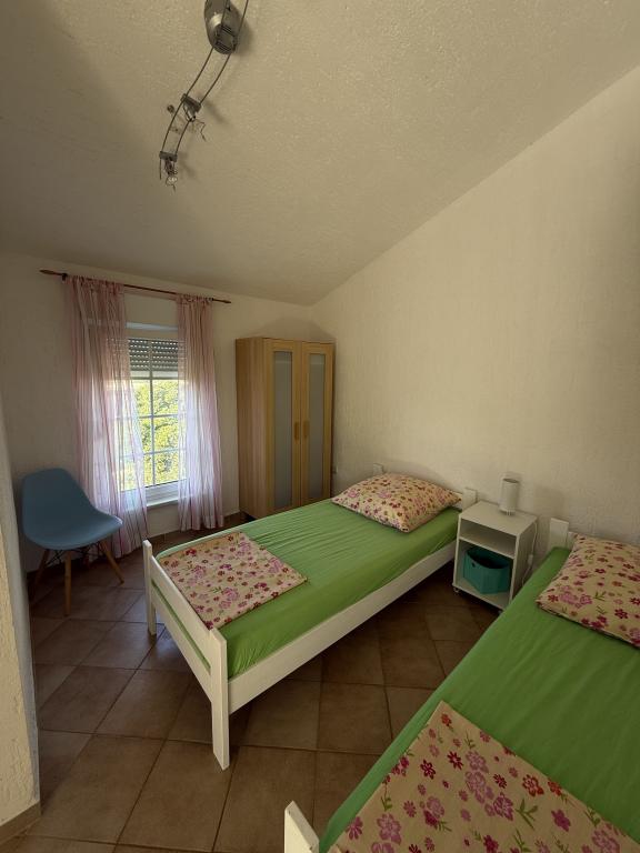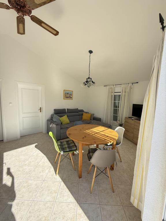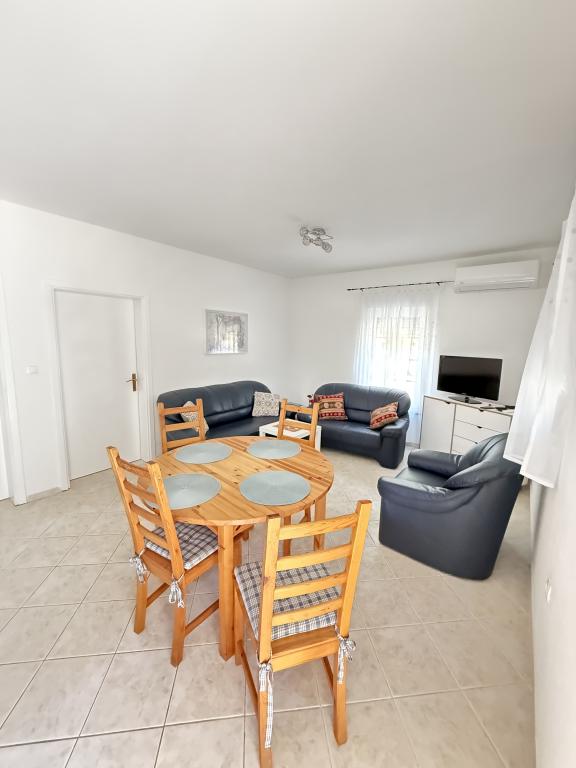 Sull'isola di Vir, a soli 150 metri dal mare, ci sono due appartamenti con una capacità fino a 5 persone. Gli appartamenti sono modernamente arredati, climatizzati e adatti a un soggiorno confortevole. Ogni appartamento dispone di una terrazza privata con area salotto e, nel cortile recintato, gli ospiti hanno accesso al parcheggio privato e al barbecue. La vicinanza del mare e della spiaggia, insieme ai servizi pratici, rendono questi appartamenti la scelta ideale per famiglie e piccoli gruppi di amici che cercano un alloggio nelle immediate vicinanze di tutti i servizi principali. Gli appartamenti possono ospitare fino a 5 persone. Sono composti da due camere da letto, gli appartamenti dispongono di un bagno con doccia e lavatrice e di una cucina completamente attrezzata collegata al soggiorno. Per il relax e la vita all'aperto, c'è anche una terrazza con area salotto. Gli appartamenti sono climatizzati e arredati in stile moderno, ideali per una vacanza in famiglia o per un soggiorno con un piccolo gruppo di amici.