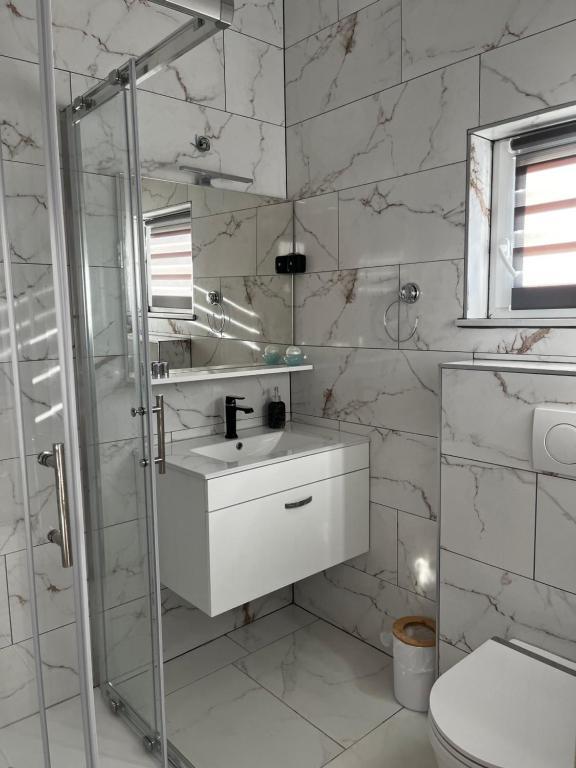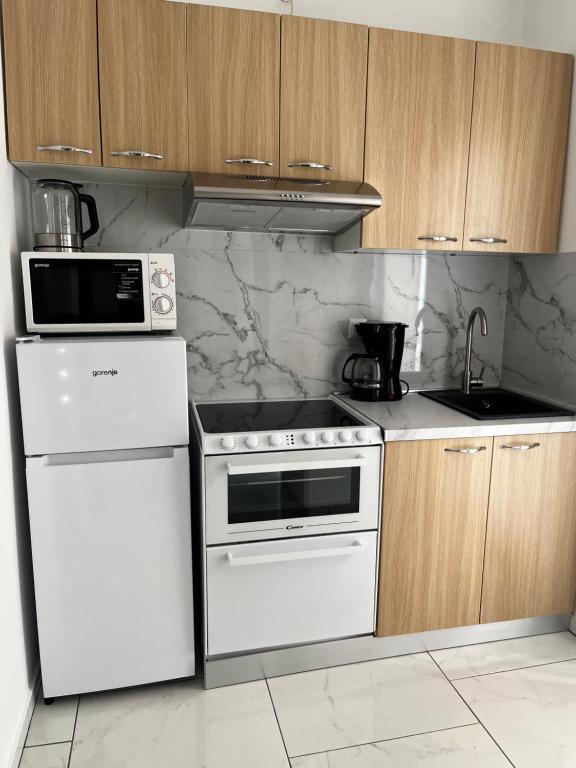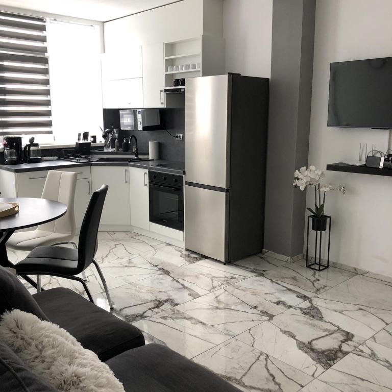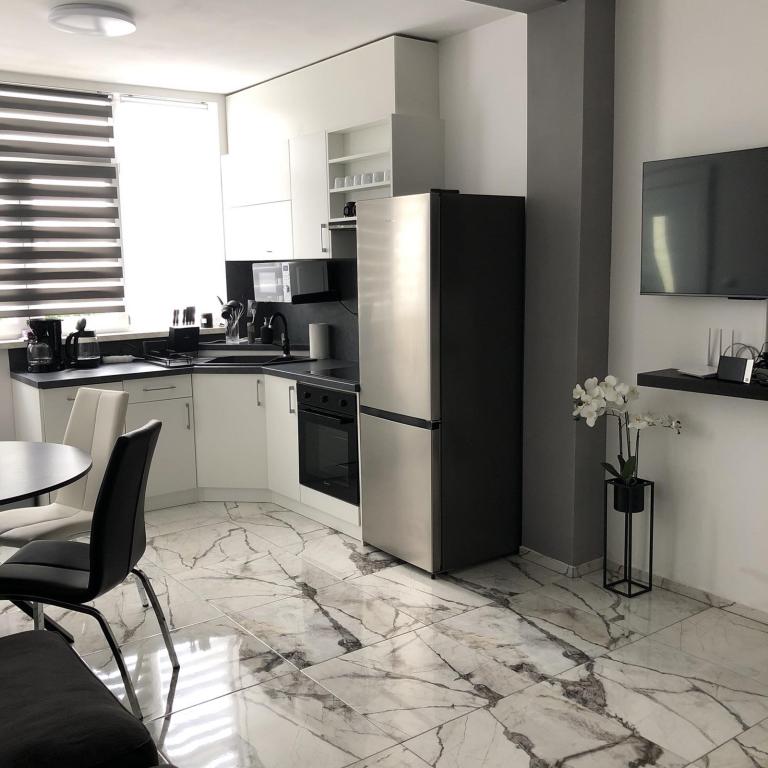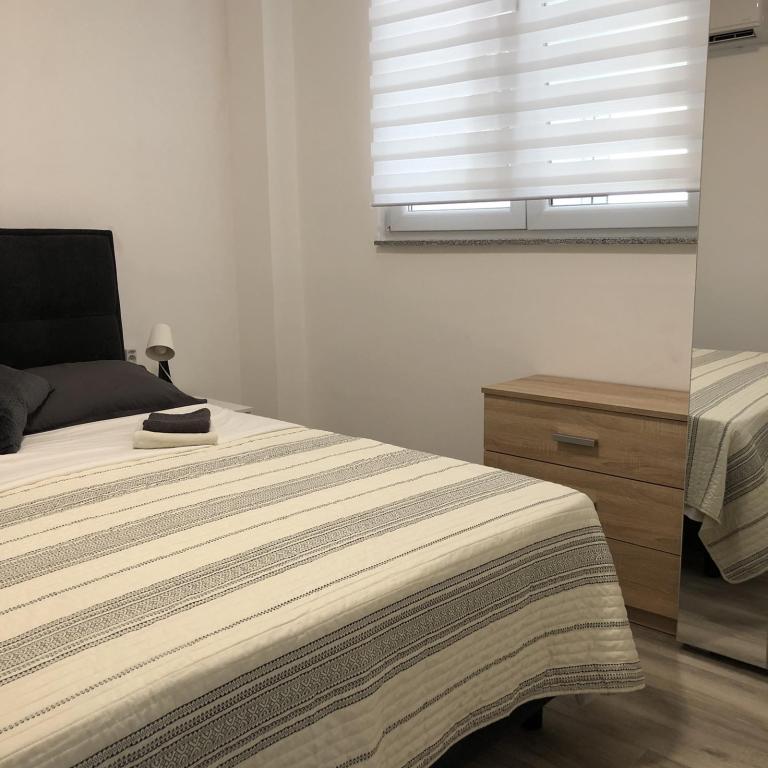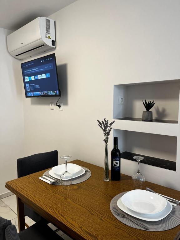 Gli appartamenti Šmit si trovano in prima fila sul mare, a pochi passi dalla spiaggia cittadina di Jadro, il che li rende la scelta ideale per gli ospiti che desiderano essere il più vicino possibile al mare e alla spiaggia. Gli ospiti hanno accesso a un parcheggio gratuito nel cortile recintato della proprietà, che garantisce maggiore sicurezza e tranquillità durante il loro soggiorno. Ogni unità abitativa dispone di una terrazza con vista mare, una comoda area salotto e una TV. Gli appartamenti sono completamente attrezzati e le cucine includono un frigorifero, un forno a microonde e tutti gli utensili necessari per preparare i pasti. Ogni appartamento dispone di un bagno privato con doccia e tutti gli ambienti sono climatizzati per rendere il vostro soggiorno confortevole anche nelle calde giornate estive. Nelle immediate vicinanze della proprietà, a soli 5 minuti a piedi, si trovano tutti i servizi principali dell'isola di Vir: ristoranti, bar, negozi, un panificio e una passeggiata lungo il mare. Il che rende gli appartamenti Jadro una scelta eccellente per coppie, famiglie e ospiti che desiderano una vacanza senza bisogno dell'auto.
