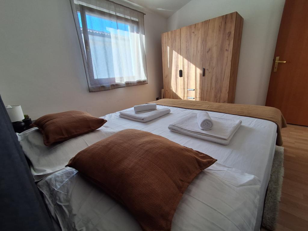 Appartamento per quattro persone ben arredato e moderno sull'isola di Vir è l'ideale per le vacanze in famiglia. Si trova a pochi minuti dalla spiaggia adatta ai bambini, dal centro dove c'è una passeggiata lungo la costa, dall'ufficio postale, dalla chiesa, dalla stazione degli autobus che si trova nelle immediate vicinanze e dal negozio. L'appartamento è di 50 m2 e ha un ingresso separato. Nel prezzo è compreso un posto auto, aria condizionata in tutto l'appartamento, barbecue, doccia estiva situata nel cortile. Si compone di due camere da letto, bagno con doccia, cucina con sala da pranzo e terrazzo. Si trova in una zona tranquilla dell'isola di Vir, ma tutto è a portata di mano, perfetto per una vacanza ideale.