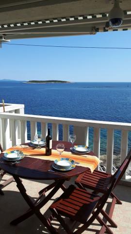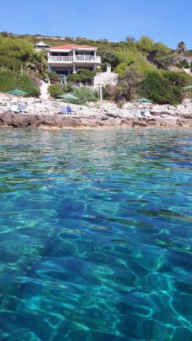Appartamenti in una zona tranquilla dell'isola, situato in riva al mare su un terreno di 1200 m2. La struttura si trova 10 metri di distanza dalla spiaggia, dieci minuti a piedi dalla spiaggia di sabbia che è l'ideale per i bambini. L'edificio dispone di un proprio parcheggio, ma l'ambiente è ricco di erbe medicinali. Di fronte alla casa c'è un grande camino che è a disposizione di tutti gli ospiti. Ideale per un tranquillo riposo e relax e del mare.
