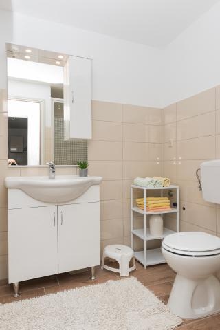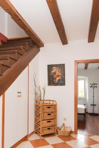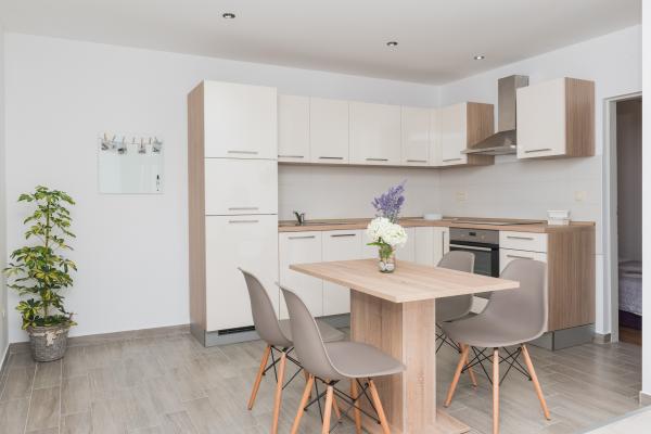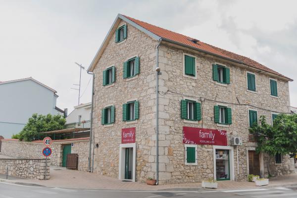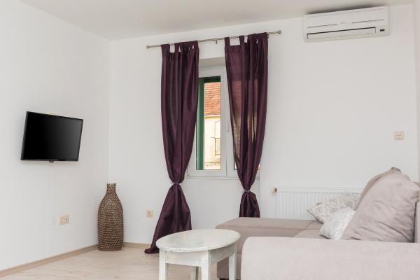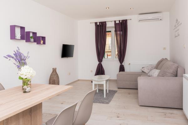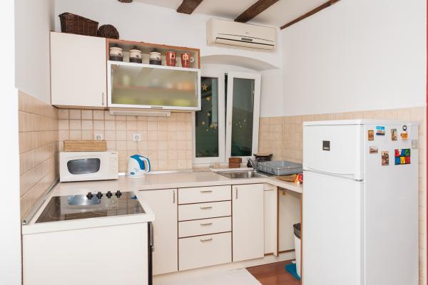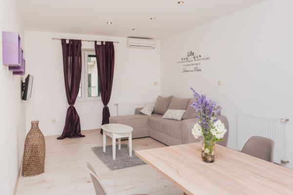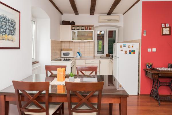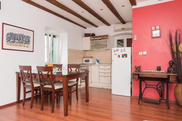 Completamente arredato in stile rustico della Dalmazia case in pietra indigene, appartamento su due piani nel centro della città, 100 m dalla spiaggia, con posto auto privato.