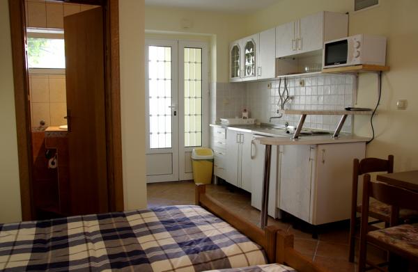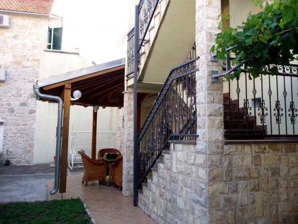 Appartamenti completamente attrezzati nel centro della città di Vodice, vicino al porto turistico, il mercato del cibo, il negozio di prodotti, farmacie, ambulatori medici, ufficio postale, banca e stazione degli autobus. Anche se nel centro di Vodice, l'oggetto ha il proprio cortile che offre privacy, verde e pace. Nel cortile c'è un barbecue che gli ospiti possono utilizzare. Per quanto riguarda l'alloggio nel centro della città, la struttura non dispone di parcheggio, ma nelle sue vicinanze (circa 200 m) c'è un parcheggio da pagare. A Vodice ci sono diversi chilometri di lunga passeggiata lungo il mare e le spiagge, dagli appartamenti a circa 100 metri di distanza, Šibenik a 12 km può essere raggiunta in autobus o in barca il cui porto è a circa 300 metri di distanza. La nave naviga più volte al giorno a Sibenik, con il floccaggio sulle isole di Prvic e Zlarin. Nelle vicinanze di Vodice ci sono due parchi nazionali: Krka e Kornati. Krka dista 25 km ed è raggiungibile in auto o in autobus. Da Kornati puoi venire da Vodice con escursioni organizzate in barca.