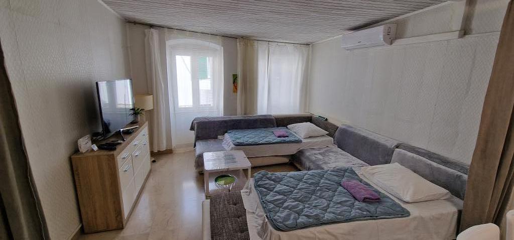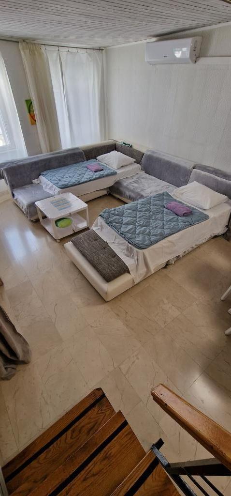 Appartamenti in centro a 40 m dal lungomare e dal porto dei traghetti. È proprio accanto alla spiaggia. La casa è su due piani, 100 mq. - Appartamento monolocale 45m2 per 2 persone, soggiorno, cucina, bagno wc. - Appartamento 75m2, 1 camera doppia con terrazzo, soggiorno per 2 persone, bagno wc, cucina. - Appartamento 100m2, 1 camera doppia con terrazzo, 2 camere singole, soggiorno per 2 persone, 2 divani con materasso, cucina, bagno wc Tutta la casa è climatizzata e dispone di internet a schermo piatto con una grande TV LCD. Il parcheggio è nelle vicinanze.