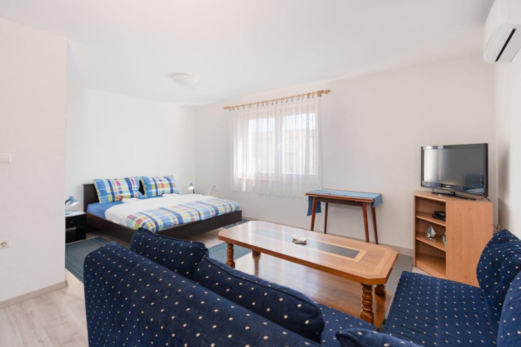Un appartamento A6 molto grande e confortevole, con tre climatizzatori, Wi-Fi ben funzionante e un'ampia terrazza. Un parcheggio ampio e coperto. Posto tranquillo e silenzioso, non si sentono i rumori del centro città, che dista circa 10 minuti a piedi. Consigliamo la spiaggia di Bristak, nuova e decisamente meno affollata, anch'essa a circa 10 minuti a piedi. Vicino al negozio con generi alimentari di base, prodotti chimici e altro. Padroni di casa molto ospitali, simpatici e amichevoli, disposti ad aiutare e parlare. Mato e Agnieszka, grazie per il bel tempo!