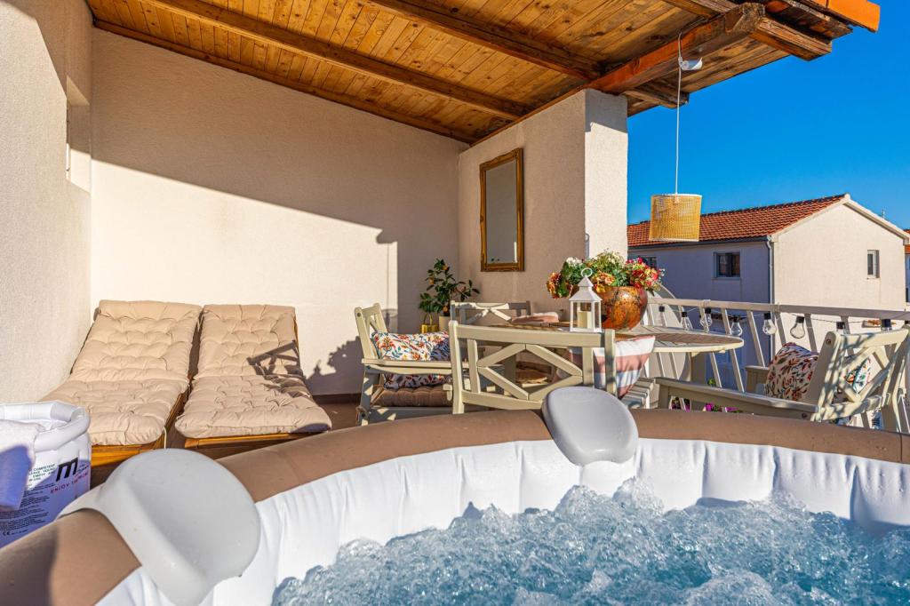 Scopri la magia dell'estate nell'appartamento Radić, situato nella pittoresca Vodice. A pochi passi dal mare, l'appartamento offre una location straordinaria per le vostre vacanze. Si trova in seconda fila dalla spiaggia, che garantisce un rapido accesso alle bellissime spiagge della Dalmazia. Innamorati dei tramonti e del blu dell'Adriatico e scopri il fascino delle vacanze estive croate. Tutto ciò di cui hai bisogno per le tue vacanze è nelle immediate vicinanze: supermercato Tommy, panetterie, fast food. È possibile raggiungere il cuore di Vodice in soli 10 minuti lungo la splendida passeggiata paesaggistica in riva al mare. Esplora i ristoranti, i caffè, i negozi e la vita notturna, godendoti l'atmosfera autentica di questa città dalmata. L'appartamento Radić è arredato con stile, sottolineando il comfort e l'eleganza, offrendoti tutto per una vacanza di lusso. Non perdere l'occasione di vivere un'esperienza indimenticabile: contattaci oggi stesso e assicurati il tuo soggiorno in questo paradiso sull'Adriatico!