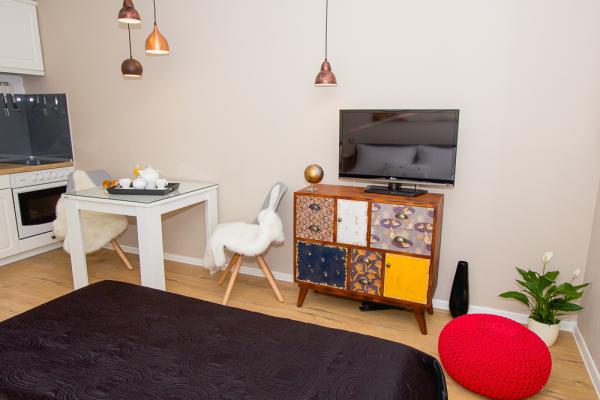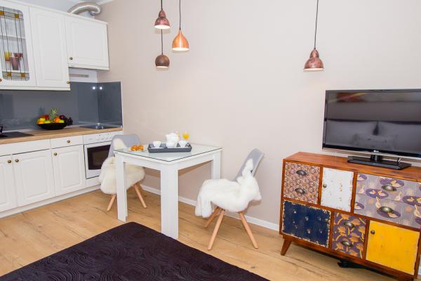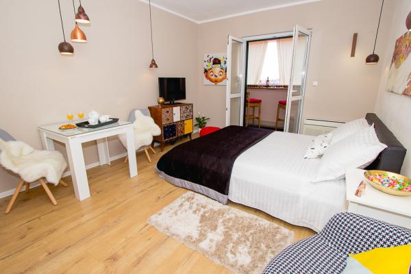 Recentemente rinnovato e monolocale, situato vicino al mare completamente attrezzata, di fronte al porto turistico che lo rende la scelta ideale per gli ospiti o proprietari di barche. L'appartamento è circondato da ristoranti, caffè, cocktail bar. Dall'altra parte della strada c'è un mercato, banca, ufficio postale, strip club, discoteche, club di slot machine. terrazzo posizione a picco sul mare, nel vaso di cui il porto turistico, dotato di un bar e sgabelli da bar confortevoli che consentono il godimento gratuito.