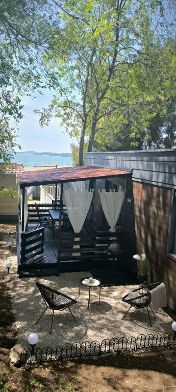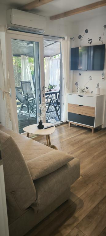 La casa mobile si trova in una bellissima parte di Vodice, nel campeggio dell'Hotel Imperial, a 20 passi dal mare e dalla spiaggia che si estende fino al centro. 20 scalini fino al primo ristorante, che si trova sopra la casa all'interno dell'hotel e della piscina. Sono disponibili tutti i servizi dell'hotel, piscina all'aperto, piscina coperta, ristoranti, palestra... Puoi nuotare proprio sotto casa, bere un caffè sulla spiaggia, nuotare in piscina, mangiare qualcosa di delizioso, tutto nel raggio di 50 metri. Sono disponibili 2 camere da letto, ciascuna con il proprio bagno, soggiorno con cucina e terrazzo. Il parcheggio è gratuito e si trova davanti alla casa stessa. Il centro di Vodice, farmacie, mercati... 3 minuti in macchina, 15 minuti a piedi. Vicino al panificio, al negozio... Gli ospiti hanno a disposizione un panificio e un grill all'aperto, WiFi gratuito, biancheria da letto.