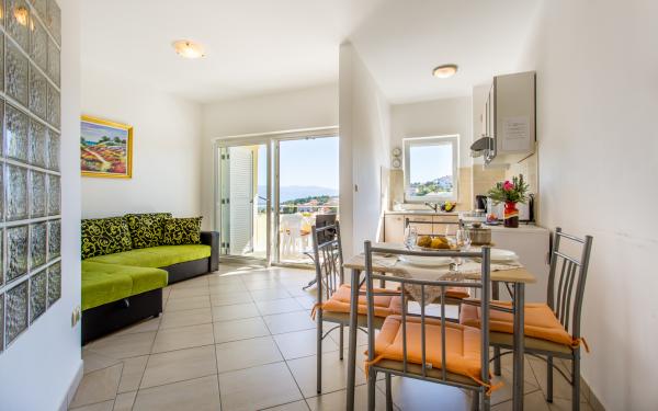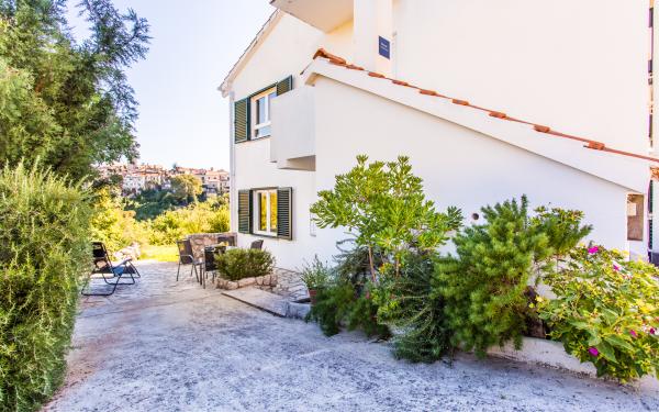 I nostri appartamenti sono situati in una zona tranquilla della città, da dove si estende una bellissima vista della città vecchia e il mare. Siamo circondati da una natura incontaminata e al mare tra noi a soli 200 metri di distanza. Gli appartamenti si trovano a 10 minuti a piedi dal centro e dalla spiaggia.