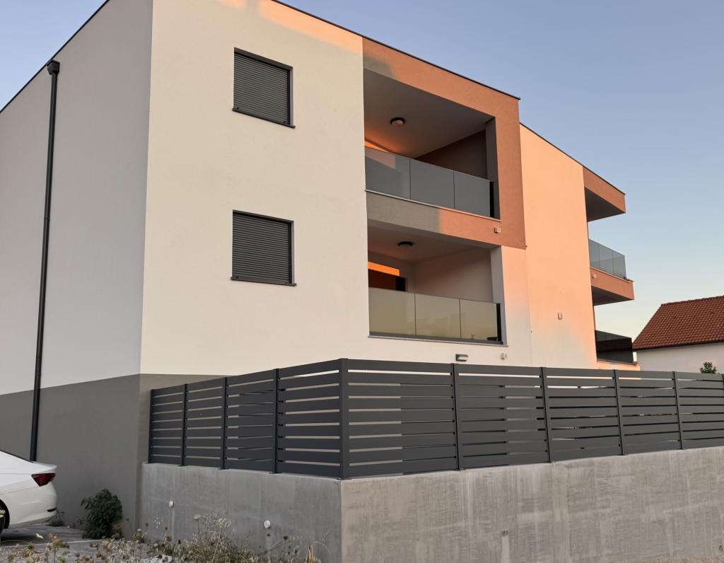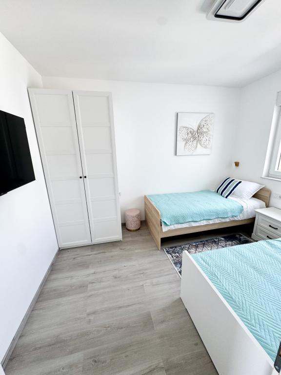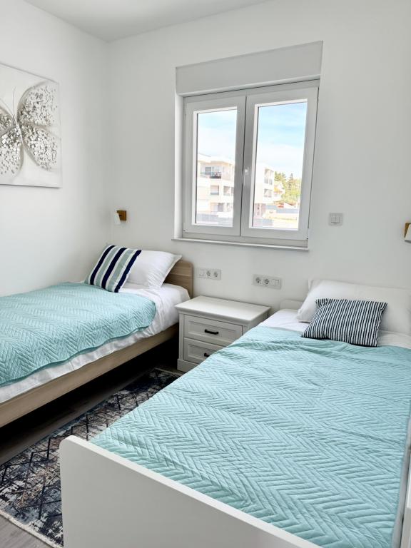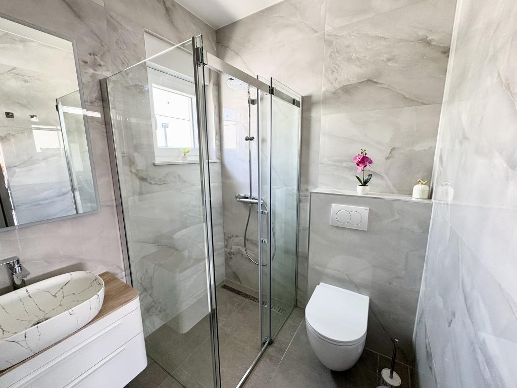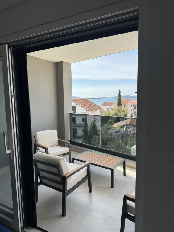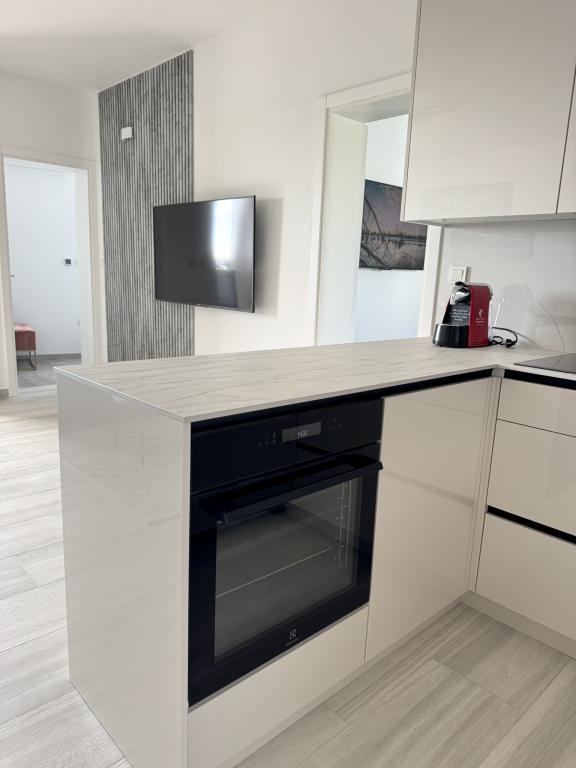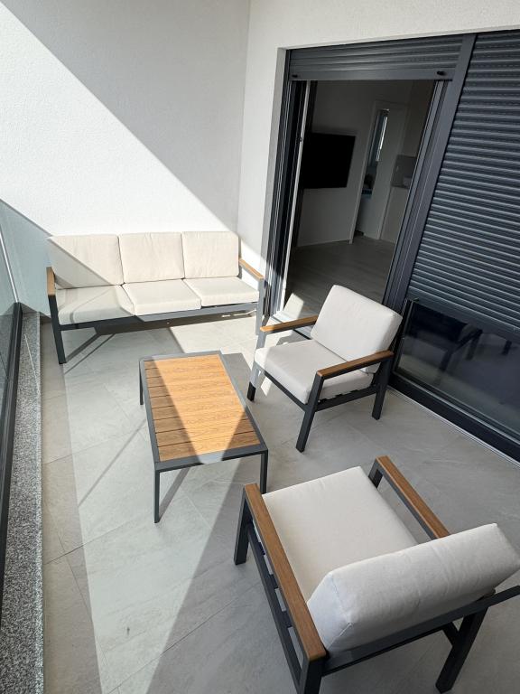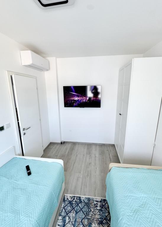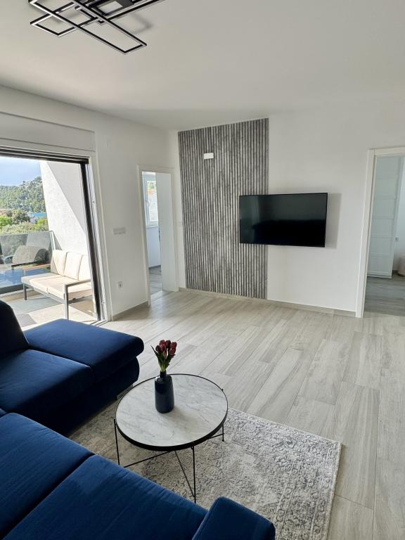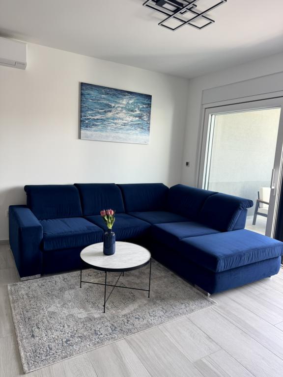 Nuovo appartamento moderno di 73 m², con due camere da letto, due bagni, tutti dotati di aria condizionata e TV. Unico appartamento al secondo piano con vista mare.