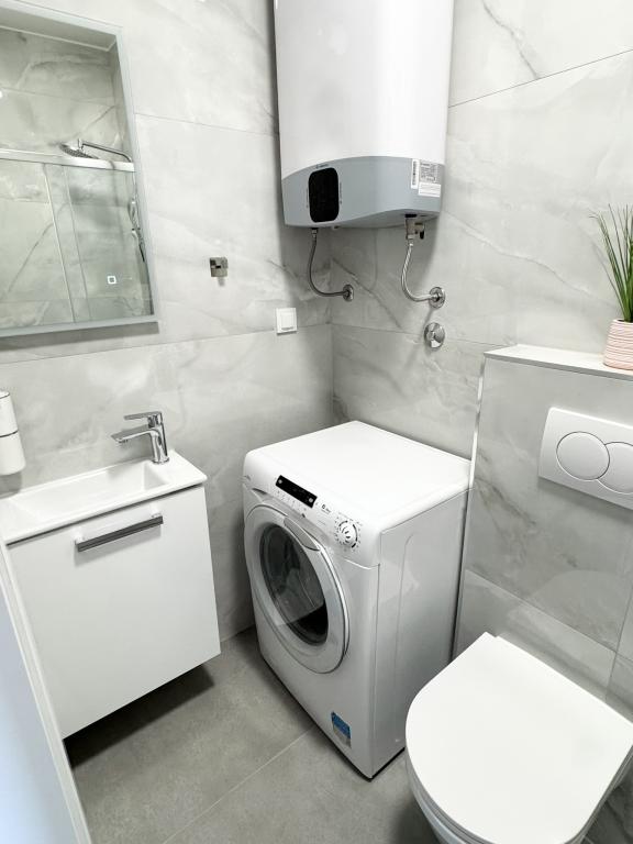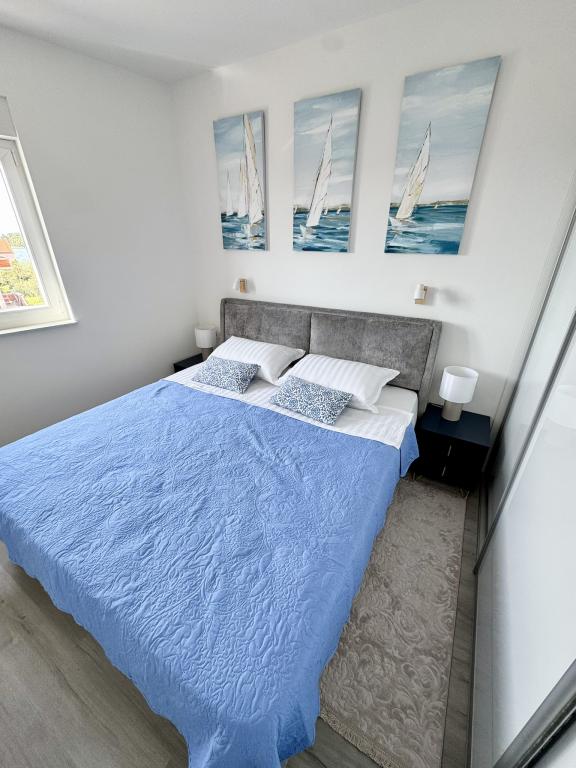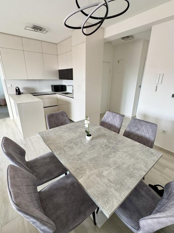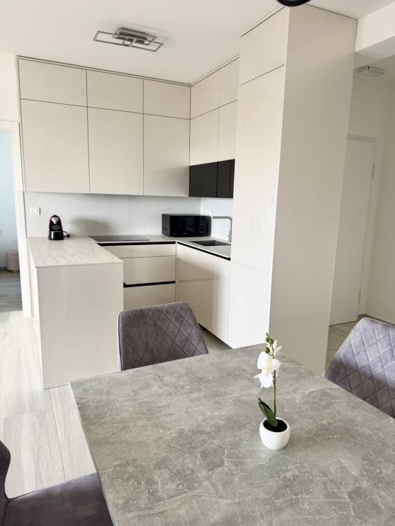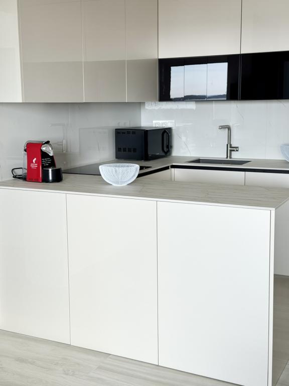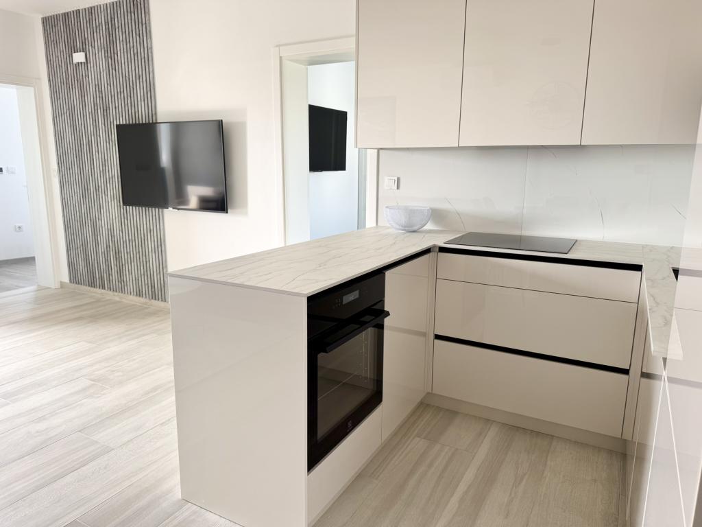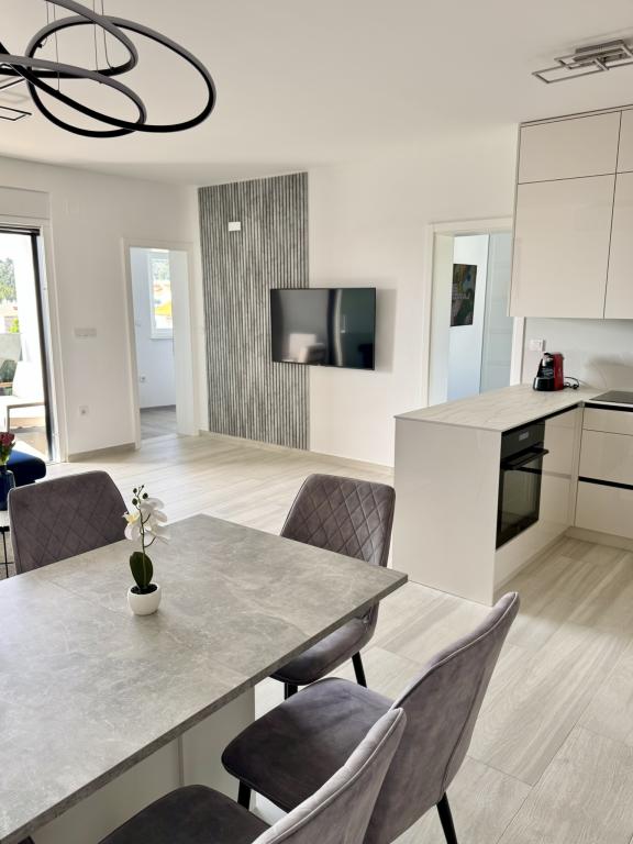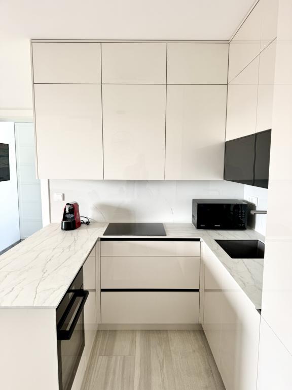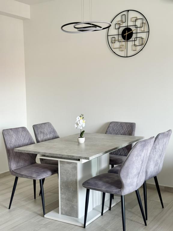 Nuovo appartamento moderno di 73 m², con due camere da letto, due bagni, tutti dotati di aria condizionata e TV. Unico appartamento al secondo piano con vista mare.