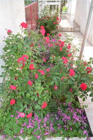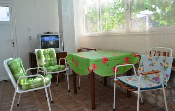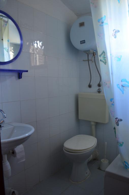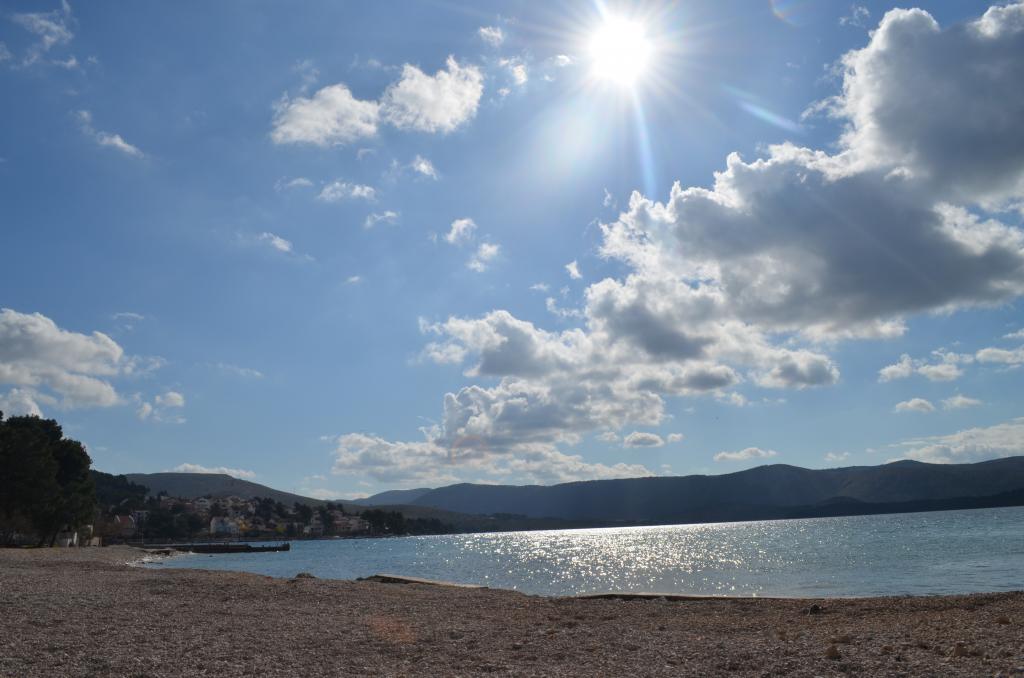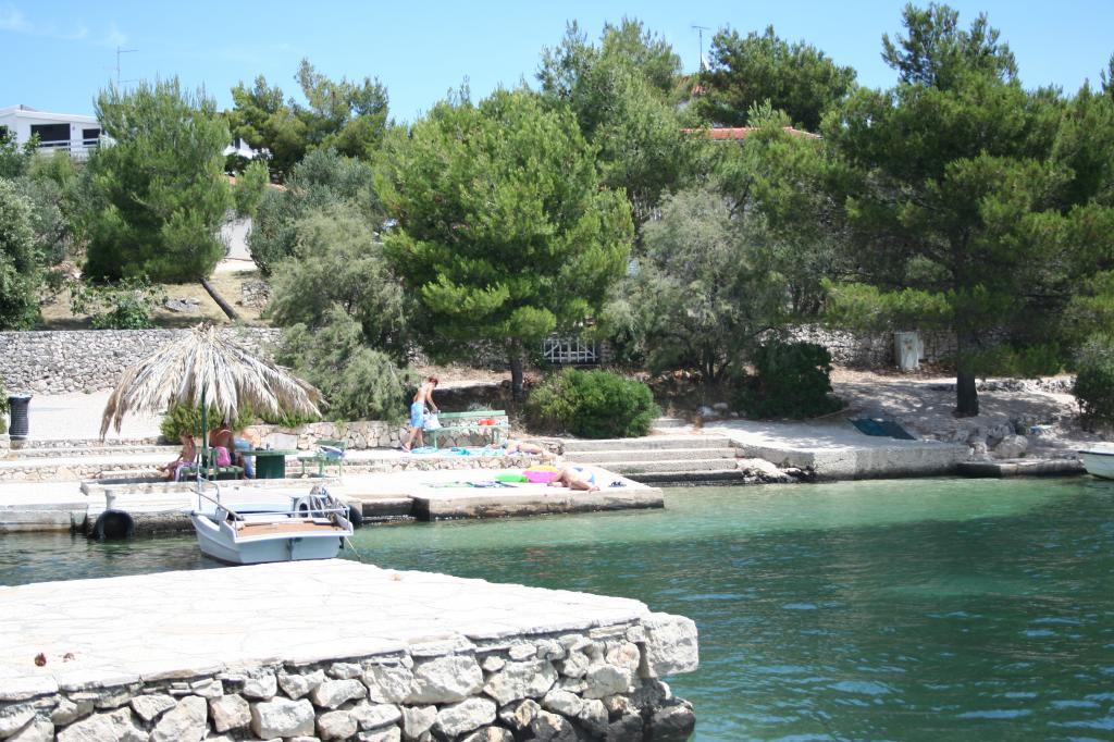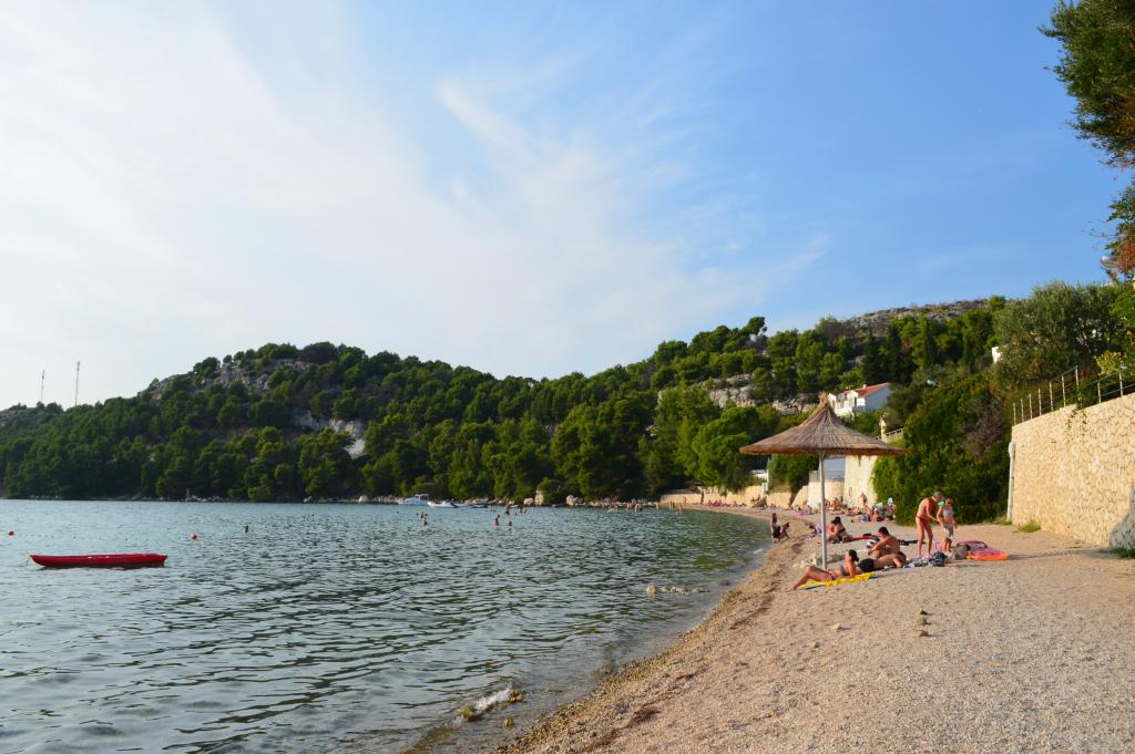 La spiaggia è in cemento e ghiaia, un po 'più in là è una spiaggia sabbiosa.