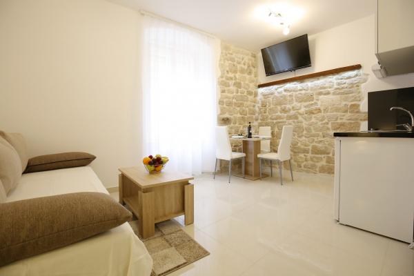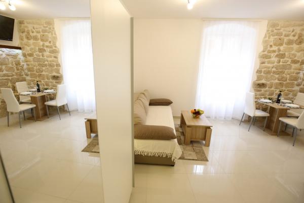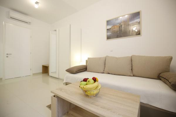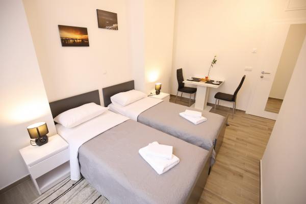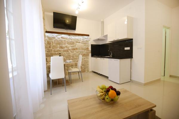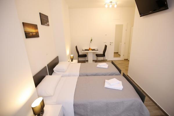 Siti di Zara appartamenti sono posizionati nel centro della città vecchia, a soli 100 metri dalla Torre del Capitano e 60 metri da Piazza del Popolo, mentre l'organo mare situato a soli 10 minuti a piedi. Il parcheggio gratuito situato a 8 minuti a piedi. Esso è dotato di cucina a due SMART TV aria condizionata perfettamente funzionante, che si affaccia attrazioni della città, bagno contenente asciugacapelli, carta igienica, shampoo, sapone liquido, asciugamani grandi e piccoli, una scrivania, un armadio e un letto matrimoniale in camera da letto. Studio appartamento è dotato di una cucina completamente funzionale, aria condizionata, sala da pranzo, SMART TV 43 \ diagonale, una zona salotto che offre un divano si trasforma in un letto matrimoniale 160x200, che si affaccia attrazioni della città e un bagno completamente attrezzato. Le camere sono dotate di letti singoli che possono facilmente connettersi a una doppia senza spazi tra materassi, aria condizionata, armadio, tavolo con due sedie frigorifero e bollitore, e un bagno privato e SMART TV.
