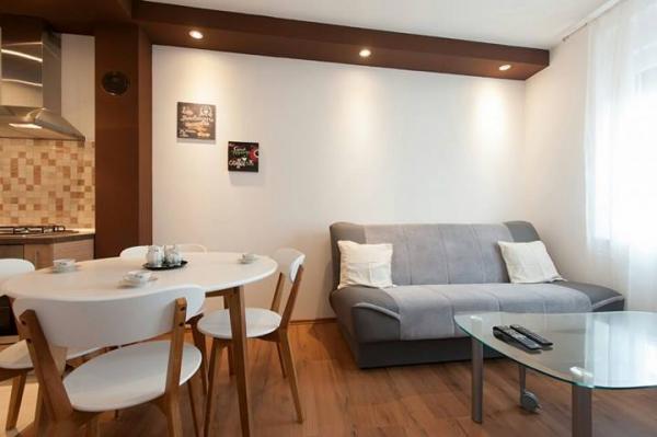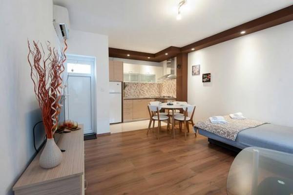 L'appartamento è adatto per le famiglie, che si trova in una zona tranquilla di Zara, in mezzo alla natura. L'appartamento ha una camera separata con un letto matrimoniale e il soggiorno ha un divano letto. Se necessario, letto aggiunto nella camera. Si trova in una casa di famiglia, con ingresso indipendente. Si trova al piano terra, dispone di parcheggio privato, ombra naturale coperta. Condivisione di un camino coperto (grill) con padroni di casa. Wi-fi gratuito.