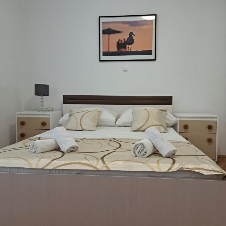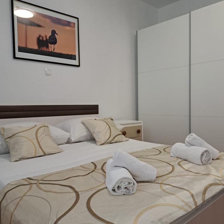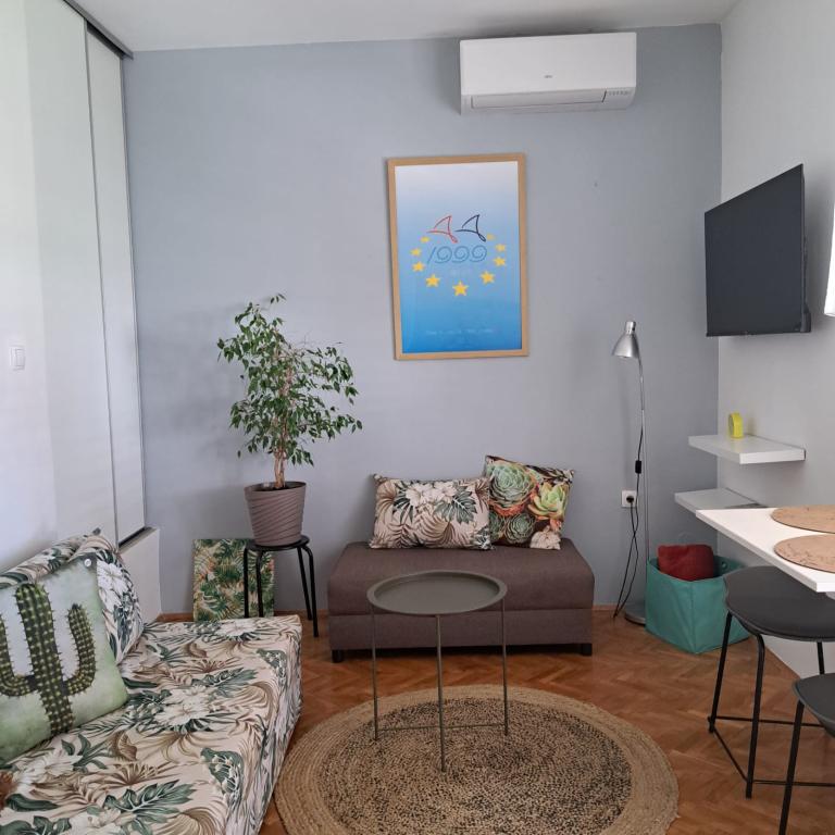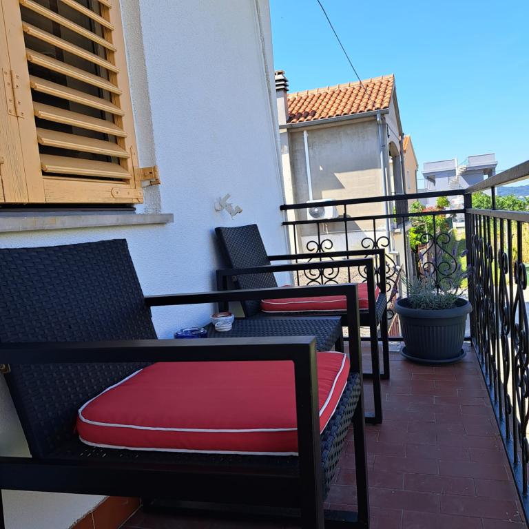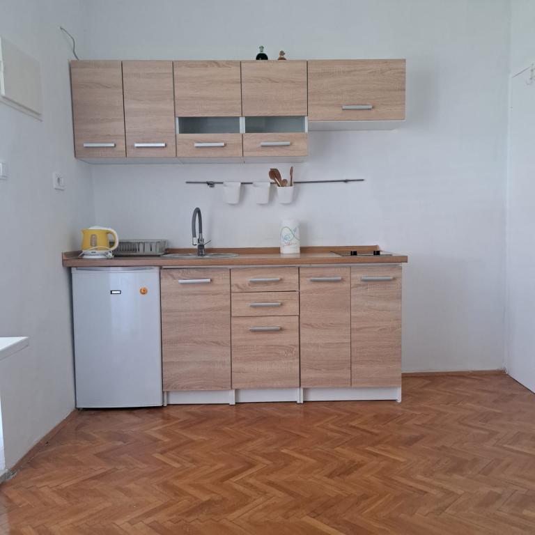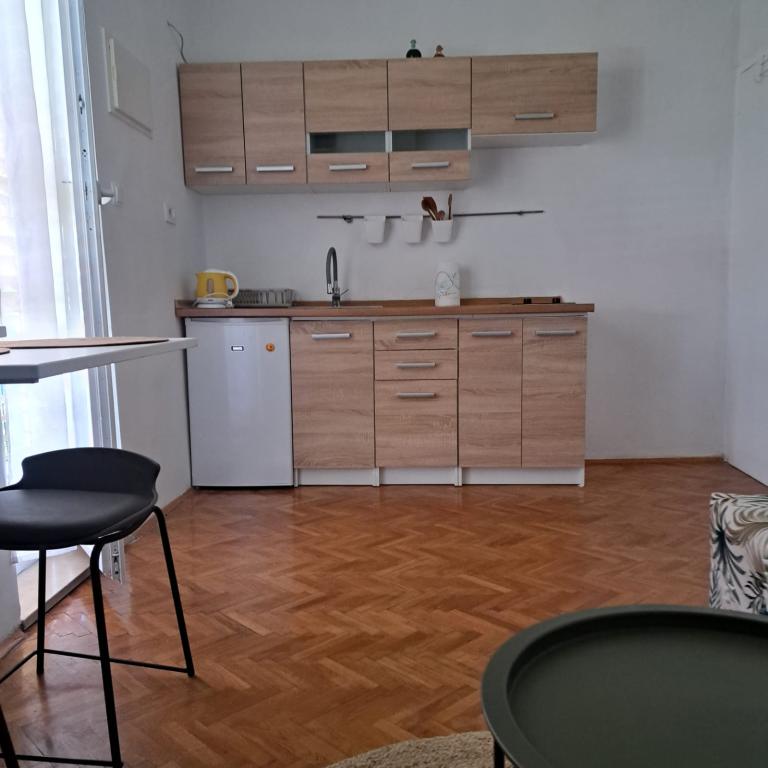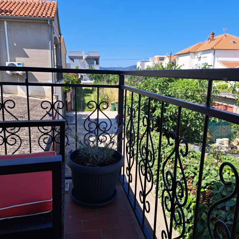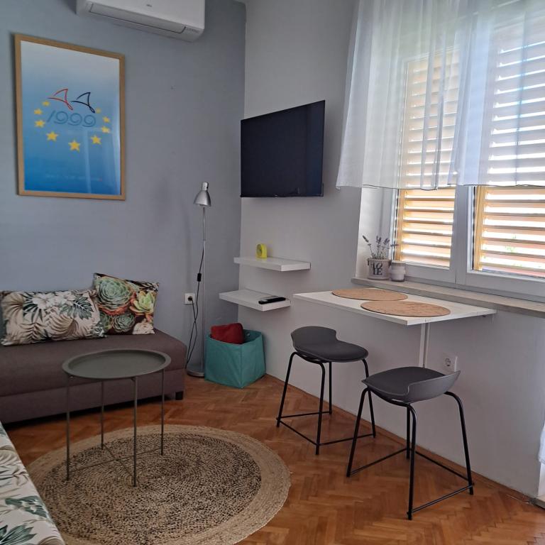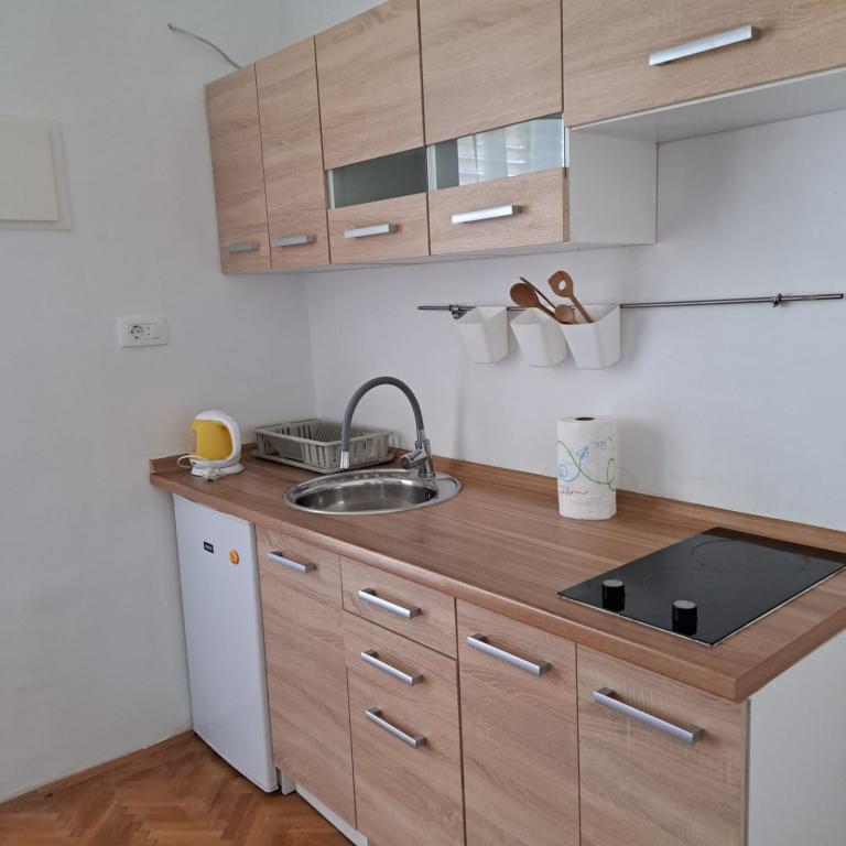 Appartamento completamente attrezzato in una zona tranquilla di Zara con vista sul mare. L'edificio si trova a 300 metri dal mare e 400 metri dalla spiaggia più vicina. Il centro dista circa 1 chilometro, e il percorso verso il centro può essere attraversato da una meravigliosa passeggiata (Karma e Kolovare) lungo il mare. L'appartamento è destinato a due persone ed è composto da una camera da letto con uscita sul balcone, un ampio soggiorno con cucina e un bagno (doccia, lavatrice...). Dal balcone si vede il mare.