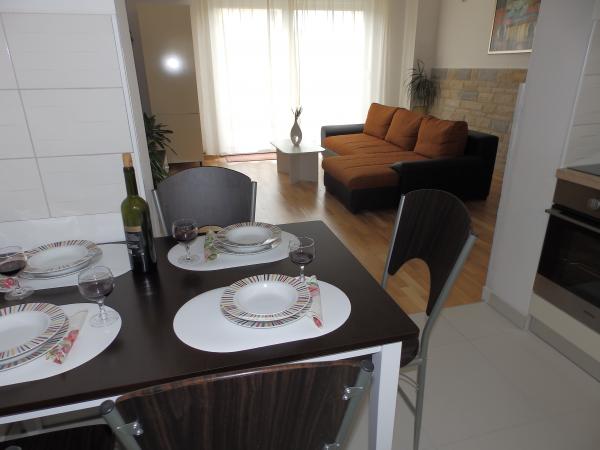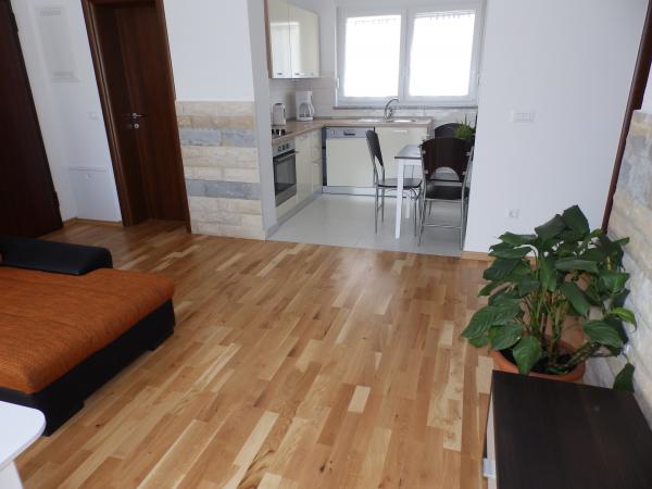 Apartment Nagoya si trova al piano terra di nuova costruzione di 6 appartamenti. Nuovo appartamento completamente attrezzato in una zona tranquilla ideale per le vacanze. Si compone di due camere da letto, cucina, soggiorno, bagno e toilette. Essa ha anche un grande giardino di 90m2 con camino, ideale per vacanze familiari. L'appartamento dispone di un posto auto. Wi-fi è gratuita.