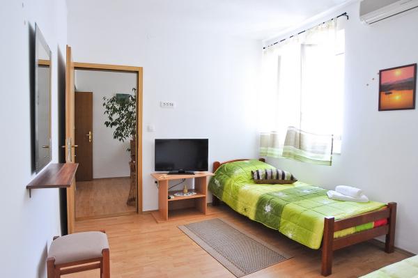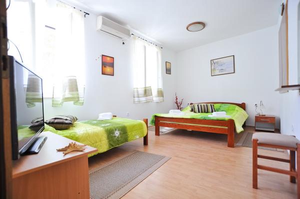 Si tratta di belle camere e un appartamento nel centro di Zara. Quando si è governato da completo silenzio e la pace, sempre bello quando si può dormire un po 'e dare un'occhiata là fuori sentire il vero spirito della città. Sono letteralmente nella prima casa quando è andato nella città vecchia, sul lato destro. La casa fa parte della storia della città di Zara, una bella pietra. Abbiamo spazio per 4 persone, ha un grande letto matrimoniale e un divano in una bella sala dove si può fare colazione. Ha wi-fi, frigorifero, bollitore, piatti, TV satellitare e, naturalmente, l'aria condizionata. L'altro lato della casa ha tre camere da letto e una cucina che si affittano insieme perché condividono un bagno, il tutto per ricevere quella parte di 7 persone. Una camera ha tre letti e gli altri due si trovano in un soppalco romantico con lucernari ed entrambi sono il doppio. Hanno anche una sala attrezzata come la stanza precedente. Tutto è lontano dalla camera solo 5 minuti a piedi. Tutti i musei, negozi di antiquariato, farmacie, e un parcheggio pubblico si trova proprio accanto alla camera. Benvenuti.