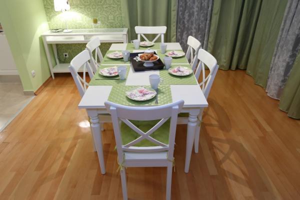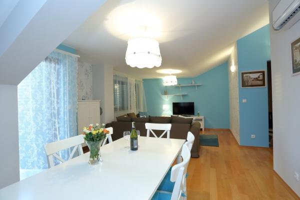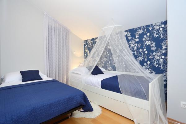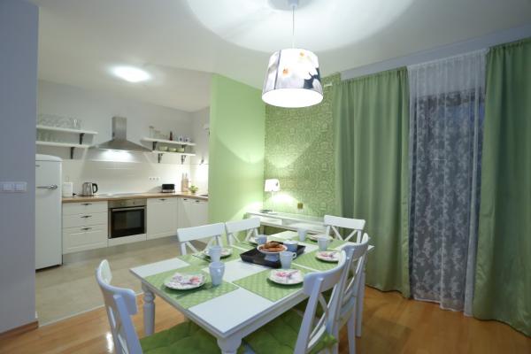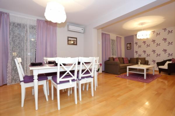 Villa completamente arredato con tre appartamenti in una zona tranquilla di Zara. La villa è ideale per famiglie con bambini e per chi vuole essere vicino al centro e tutti i comfort, ma in una posizione tranquilla. La struttura si trova a 15 minuti a piedi dal centro storico, a 10 minuti a piedi dalla spiaggia di sabbia. Nelle vicinanze ci sono tutti i principali temi: una farmacia, un ufficio postale, negozi, ristoranti, stazioni degli autobus, impianti sportivi. Tutti gli ospiti sono dotate di parcheggio privato o, se del caso, il trasferimento dall'aeroporto o bus / stazione ferroviaria (su richiesta). Ogni appartamento dispone di tre camere da letto, due bagni, cucina, soggiorno e terrazza. Tutti gli appartamenti sono dotati di elettrodomestici necessari: stoviglie, biancheria da letto, asciugamani, pulizia, set di cortesia. Tutti gli ospiti possono utilizzare il barbecue all'aperto.