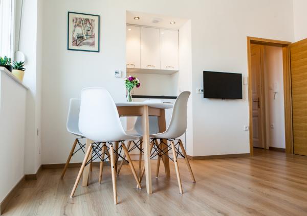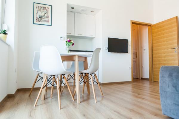 Appartamento Zagreb City si trova nel centro di Zagabria - Ilica con ascensori, 3 minuti a piedi dalla piazza Ban Jelacic. Si compone di un soggiorno, cucina, camera da letto, disimpegno e bagno. E 'stato completamente ristrutturato e arredato con mobili nuovi e attrezzature. Esso ha un balcone con vista sulla città. L'appartamento si trova al terzo piano del palazzo. Attrezzature - internet, aria condizionata, riscaldamento, asciugamani, asciugacapelli, utensili da cucina (sale, zucchero, olio, aceto).