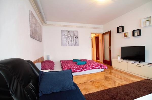 Scopri di piu Unità d'alloggioCucina completamente attrezzata combinata con sala da pranzo ha tutto il necessario se si rimane più giorni. Gli ospiti possono utilizzare la connessione veloce a Internet (Wi-Fi), lenzuola e asciugamani puliti e un asciugacapelli. Se arrivate in auto, di fronte l'appartamento ha abbastanza spazio per il parcheggio, che è gratuito. Appartamento consiglia vivamente agli utenti di ospedali nelle vicinanze dell'appartamento. Per soggiorni più lunghi offriamo uno sconto.