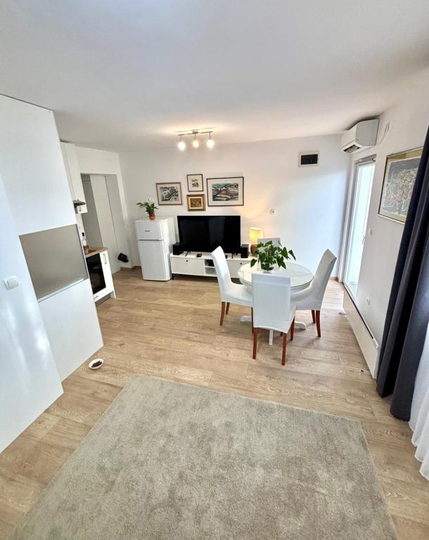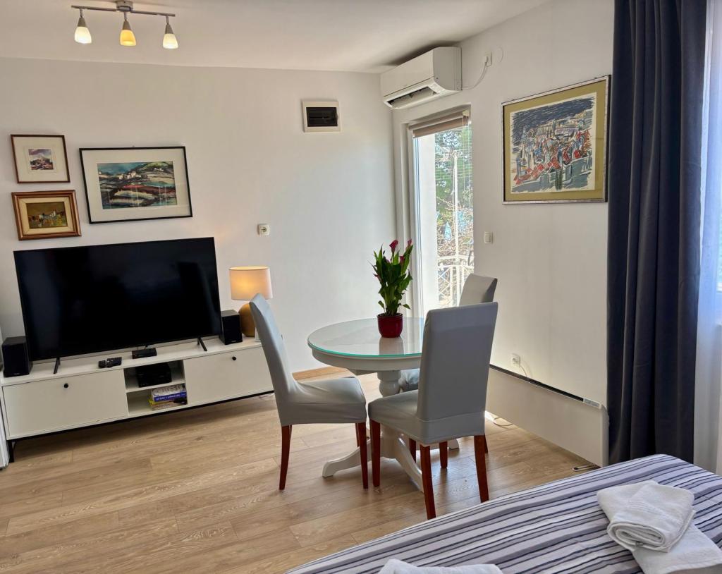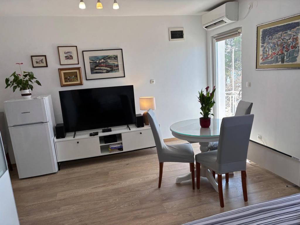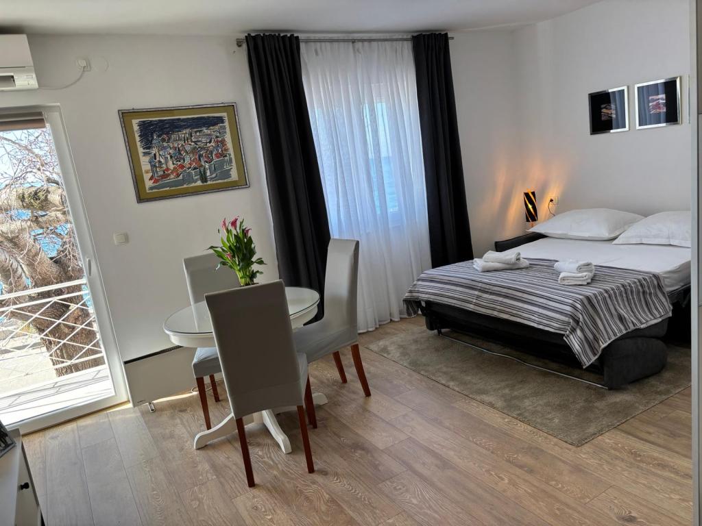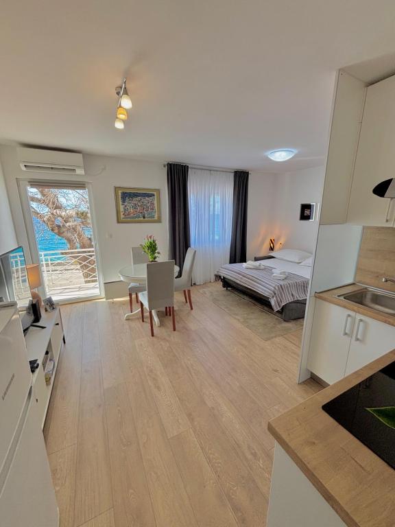 Il monolocale è completamente e modernamente arredato e si trova al primo piano di una casa familiare, a 30 metri dal mare e da una splendida spiaggia di ciottoli con un accesso graduale al mare. Davanti alla casa c'è un parcheggio per un'auto e nel cortile c'è un gazebo con barbecue e tavoli per stare all'ombra. Nelle vicinanze si trovano negozi, ristoranti, una pasticceria e, all'ingresso del paese, il centro commerciale Plodine.