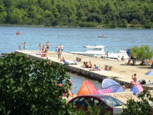Appartamento con una camera familiare, ideale per due adulti e 2-3 bambini. Si trova vicino al mare, in una baia tranquilla Gladuša, in Ždrelac sull'isola di Pasman. Sulla grande terrazza offre una vista sull'intera baia e il porto della città.