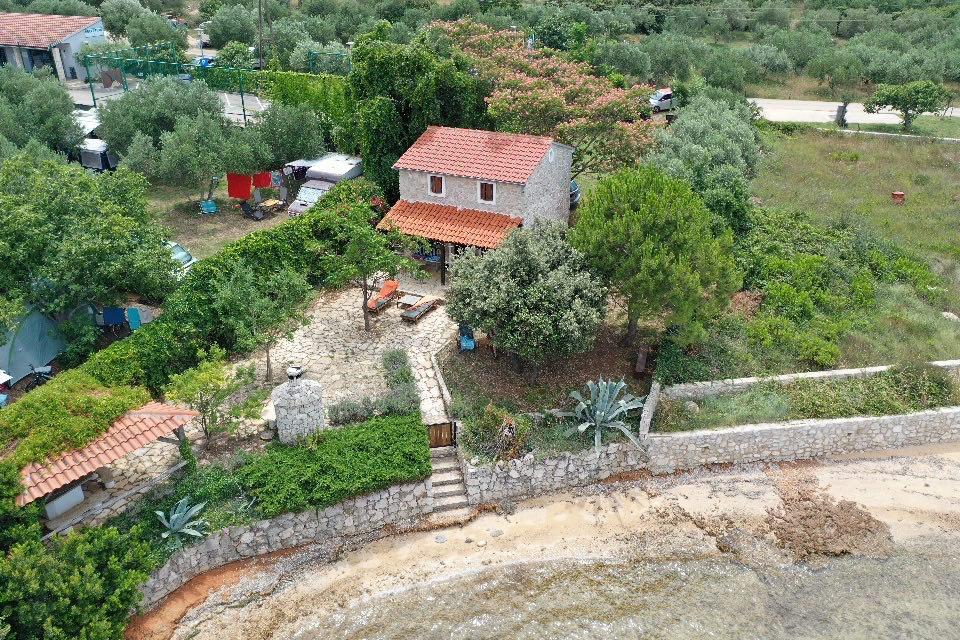 La casa si trova a sud del centro di Tkon sull'isola di Pašman, proprio accanto alla strada. Puoi attraversare il cancello del cortile e parcheggiare l'auto proprio accanto alla casa. Accanto alla casa si trova un campo per nudisti nascosto alla vista da piante rampicanti. Il primo edificio dall'altra parte è a 50 metri. La casa si trova a 10 m dal mare e da una spiaggia sabbiosa. Il mare è profondo circa mezzo metro e ha un fondale sabbioso, ideale per i bambini. Davanti alla casa c'è una terrazza coperta in legno con tavolo e panche dove potrete godervi l'ombra e pranzare, e proprio accanto c'è una griglia in pietra. C'è anche una sporgenza proprio davanti alla casa che fornisce ombra. C'è una doccia esterna sulla terrazza.