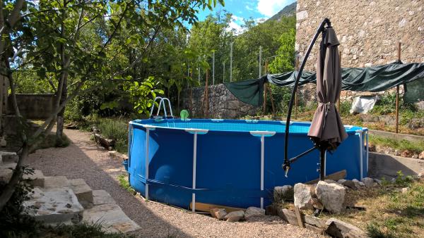 sedmerosobna nativo Completamente arredato (costruito nel 1884). Casa di aria condizionata per 10 persone. 1 appartamento con ingresso indipendente dal cortile per 2 persone, 1 camera con un ingresso indipendente dal cortile per 2 persone, 2 camere da letto per 3 persone, sala da pranzo, 2 cucine, barbecue, 2 cantieri, il quarto 80x120 piscina, gazebo, parcheggio per diverse auto . Parcheggio per la barca o yacht. sport ricchi, strutture ricreative e culturali della valle. castello Frankopan a poche centinaia di metri dalla casa. valli tranquilla e verde. Se amate l'ambiente naturale e sono alla ricerca per la pace e la salute valle è l'ideale in primavera, estate e autunno mesi. Animali ammessi senza alcun costo aggiuntivo. Cortili racchiusi da alte mura di pietra che permette di privacy.