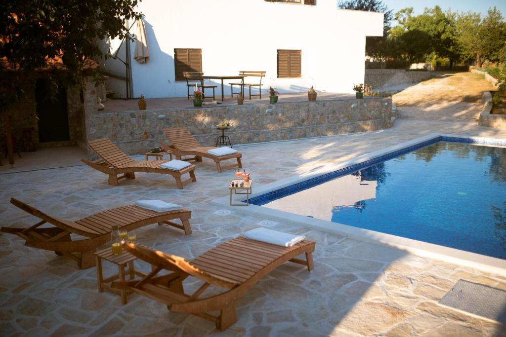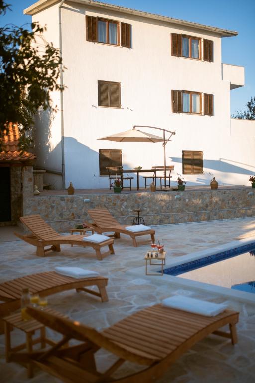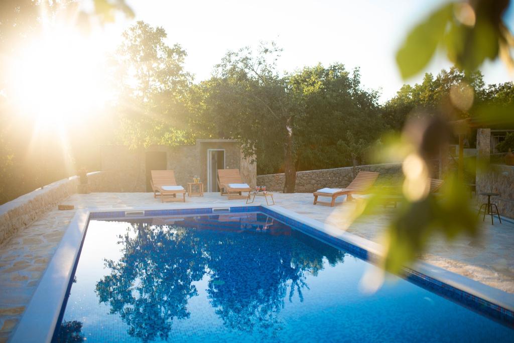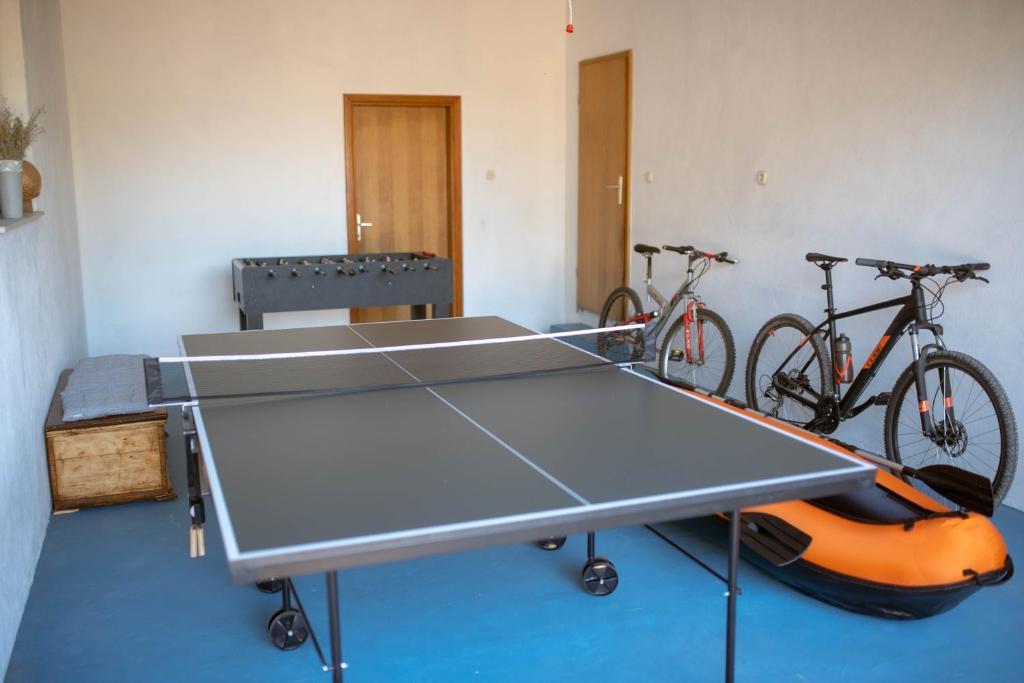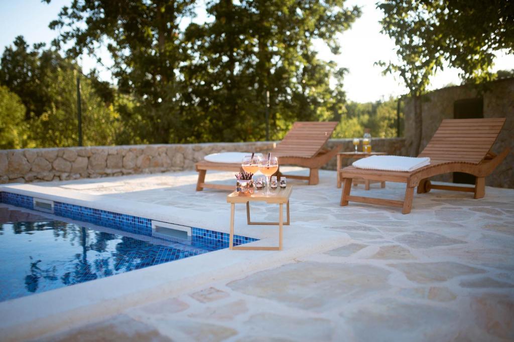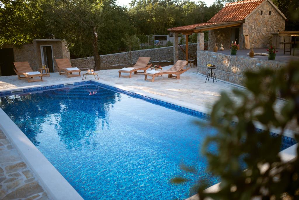 Oltre all'alloggio, gli ospiti possono utilizzare i prodotti locali di stagione dell'orto, come ciliegie, fragole, amarene, mele, pere, prugne, rosmarino, ecc. La casa vacanze Pearl in Stone si trova nell'incantevole cittadina di Gornji Vinjani e offre un ampio giardino, tranquillità, una piscina privata e una vista sul cortile e sul bosco. Dispone di 4 camere da letto, TV con numerosi programmi, aria condizionata e WiFi gratuito. Cucina completamente attrezzata con lavastoviglie e frigorifero, lavatrice e bagno con doccia in WC e lavanderia. Offre una piscina esterna stagionale riscaldata di 9x4 m con casetta separata per i giochi e intrattenimento, e un barbecue. Gli ospiti possono rilassarsi nello splendido giardino paesaggistico. Sono a vostra disposizione 2 biciclette e un kayak, ping-pong, calcio balilla, freccette e altre attrezza