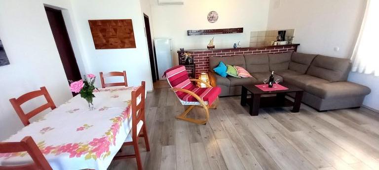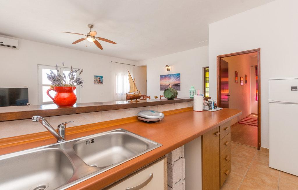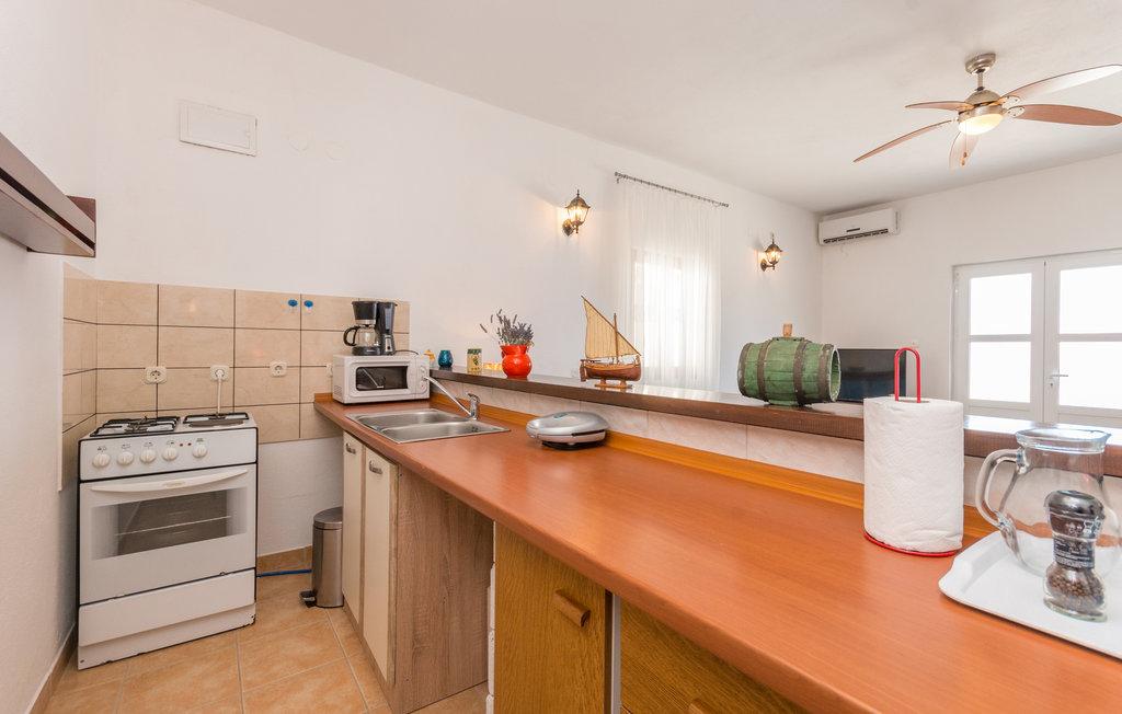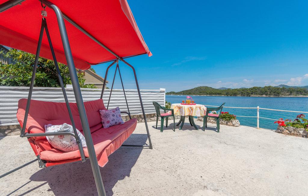 Un'ampia terrazza con comode sedie a sdraio e ombrelloni, che offre una splendida vista sul mare, è un ottimo invito a trascorrere le vostre vacanze qui. Rilassatevi con la vostra famiglia in questa piacevole sistemazione. Mali Iž, nel canale centrale tra Ugljan e Dugi Otok, è circondata da altri isolotti. Traghetti e linee di navigazione consentono un rapido arrivo. I ristoranti servono ottimi vini locali e deliziosi piatti della cucina dalmata. La casa vacanze è composta da un'ampia area comune, soggiorno, cucina e sala da pranzo - open space, due camere da letto e un bagno. Una camera da letto ha un letto matrimoniale di 160x200 cm, mentre l'altra camera ha un letto a castello di 90x200 cm. La casa dispone di un'ampia terrazza con vista mare a 10 metri dal mare. Accanto alla casa c'è un camino con barbecue. Il parcheggio gratuito è disponibile in un'area pubblica vicino all'alloggio.