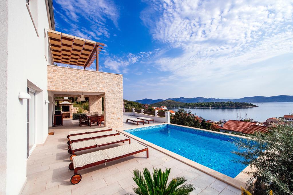 Rilassatevi nella pace e la tranquillità di Villa Aya sulla bellissima isola di Iz. L'isola di Iz si trova alle porte del Parco Nazionale di Kornati. Da Zara, una città con 3000 anni di storia lunga, è situata un'ora e mezza di traghetto o 40 minuti di barca veloce. La sua posizione e l'ambiente naturale unico è sinonimo di selvaggio, tuttavia la natura ecologicamente preservato. Dal momento che intorno Iz di dieci isole, tutte dotate di una barca o affittare esso, si può godere di un giro della baia e la spiaggia, completa solitudine e intimità. L'atmosfera speciale che mantiene la nostra isola lo rende ideale per le vacanze in famiglia e le vacanze della tua anima. Nuovo e moderno, arredate in modo confortevole Villa Aya con una piscina riscaldata ha una bellissima vista mare e sulle isole vicine. Bay Knez trova sul palmo. . La villa dispone di tre camere da letto, tre bagni, salotto, cucina e sala da pranzo che fanno parte della terrazza all'aperto con piscina, barbecue. Il parcheggio è previsto davanti alla casa. I piccoli animali sono i benvenuti.