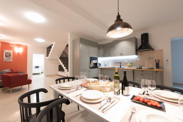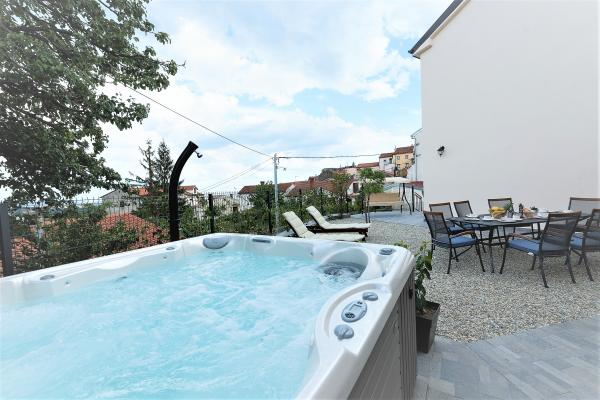 La casa vacanze Amberg è moderna e completamente attrezzata e si trova nel centro storico di Kastav, sulla collina sotto lo storico Creekvine, un monumento culturale protetto. La casa è nascosta alla vista con una vista unica sulla baia di Kvarner e sulle montagne circostanti, e offre il comfort di una casa di vacanza di alta classe. La posizione è ideale per i visitatori che vogliono scoprire la Riviera di Opatija, l'Istria e il Quarnero. La casa dispone di tre camere doppie luminose e spaziose, tre bagni, una galleria. Le due camere hanno il proprio bagno. Una camera ha la sua ampia terrazza. Tutti hanno le loro TV a schermo piatto e unità di condizionamento d'aria separate. Alcune sono dotate di servizi igienici e scrivania. Nella parte inferiore della casa c'è un soggiorno, una cucina ben attrezzata e sala da pranzo, un parco giochi, una lavanderia e un deposito biciclette. La connessione Wifi è disponibile in tutto l'edificio. Nel cortile c'è una vasca idromassaggio per sei persone (2x2 m), mobili da giardino di qualità, altalena e barbecue. Ideale per famiglia e amici.