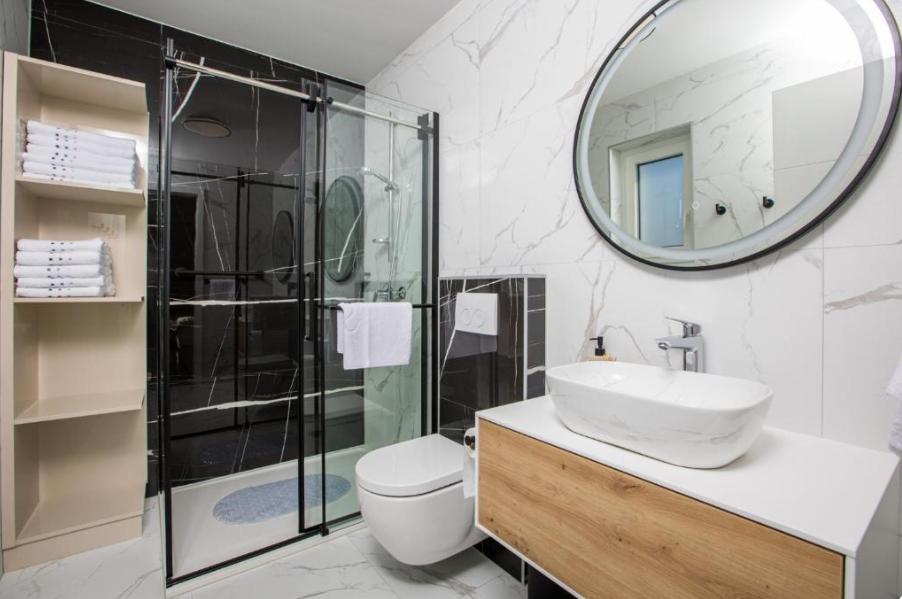 L'appartamento Aura si trova a Malinska, sull'isola di Krk, a soli 300 metri dal mare, ed è ideale per una vacanza rilassante. Il moderno e spazioso appartamento è composto da tre camere da letto, un soggiorno, una cucina completamente attrezzata, un balcone e una terrazza con vista mare. Gli ospiti hanno a disposizione Wi-Fi, aria condizionata, una piscina privata e un parcheggio. Nelle vicinanze si trovano numerose spiagge e attrazioni come il centro di Krk e il Castello di Krk (13 km), il Monastero di Košljun (16 km) e il porto turistico di Punat (17 km), il che rende questa posizione la perfetta combinazione di tranquillità e servizi.