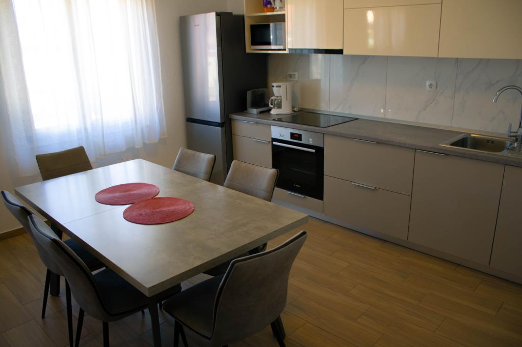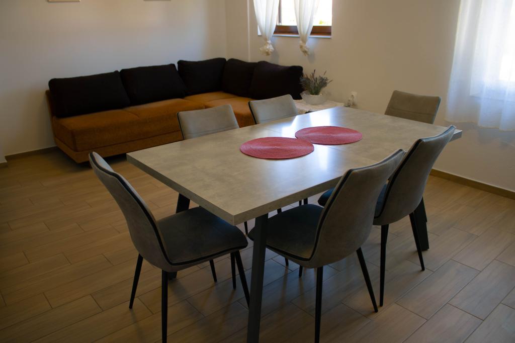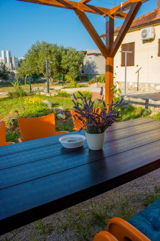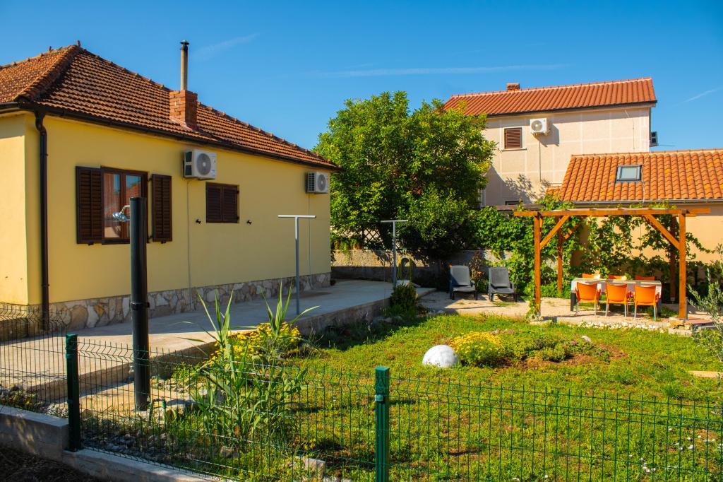 La casa vacanze Lilli si trova a Vrsi-Mulo, a 200 metri dal mare e dalla spiaggia. Questa casa con tre camere da letto è la destinazione ideale per le vacanze di tutta la famiglia. Dispone di una cucina modernamente attrezzata e di due bagni con vasca, mentre l'ampio giardino è perfetto per socializzare attorno alla griglia. La posizione è tranquilla e nelle immediate vicinanze si trovano numerosi negozi, ristoranti e bar, oltre a un mercato con frutta e verdura fresca e un panificio. Inoltre, la storica città di Nin è a soli dieci minuti di auto, mentre Zara è a circa 30 minuti. La spiaggia, a due minuti a piedi, è splendidamente decorata con ciottoli, e a dieci minuti di auto si trovano le spiagge sabbiose di Vrsi o Nin.