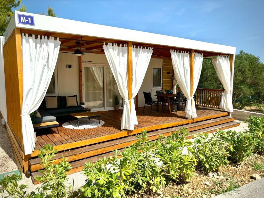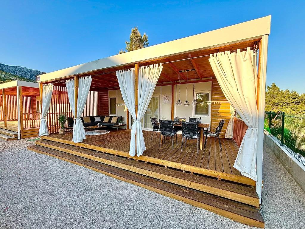 Scoprite una nuova e moderna casa mobile in stile mediterraneo, situata nella piccola cittadina dalmata di Orebić (Camp “Dalmata”), immersa in una natura incontaminata e circondata da spiagge dorate, con una varietà di ristoranti e cantine che offrono una cucina di alto livello e vini rinomati. Rilassatevi sulla terrazza di 30 m2, a pochi passi dalla piscina, attrezzata con lettini prendisole, un'area salotto esterna e tutto il necessario per soddisfare i vostri desideri edonistici.