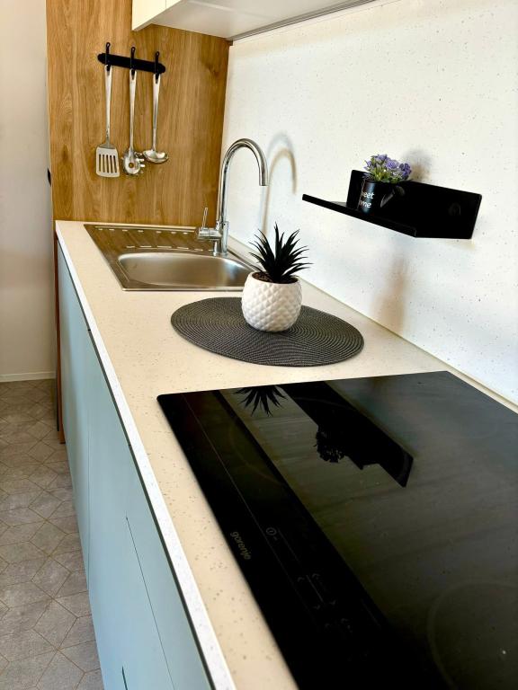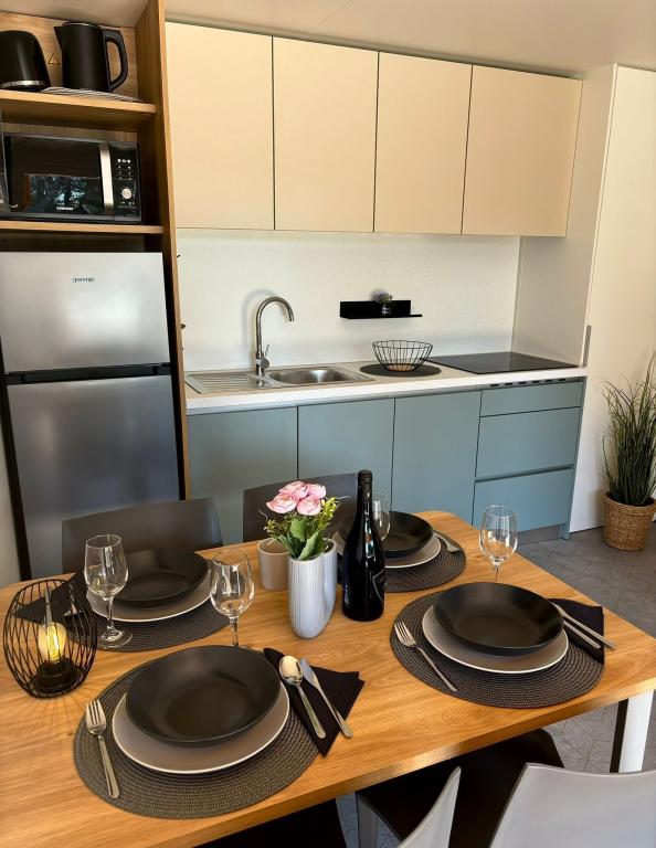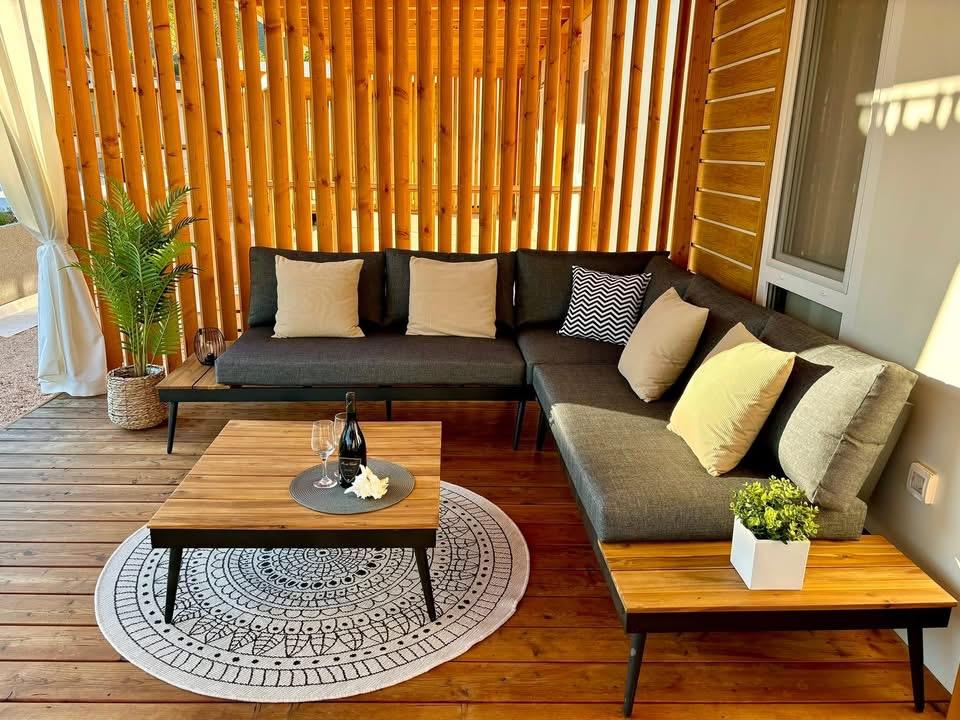 Descrizione della proprietà: Casa mobile di lusso moderna ️ A 50 metri dalla spiaggia A pochi passi dalla piscina Per max. + persone Adatto ai neonati (culla gratuita) Adatto ai bambini Animali ammessi ️ 1 camera da letto con letto matrimoniale ️ 1 camera da letto con due letti singoli ️ 1 divano letto 2 bagni separati ️ Cucina con lavastoviglie, frigorifero, congelatore, forno a microonde, tostapane, bollitore, piano cottura elettrico… ️ Macchina del caffè Terrazza e soggiorno 30m2 🪑 Lettini prendisole ️ Parcheggio gratuito 🛜 Wi-Fi gratuito Aria condizionata ️ Barbecue ️ Smart TV Android a schermo piatto Repellenti per zanzare gratuiti Doccia esterna a bordo piscina Supermercato a 100 metri di distanza Ristoranti nelle vicinanze ️ Caffè e bar nelle vicinanze Noleggio auto nelle vicinanze Drin
