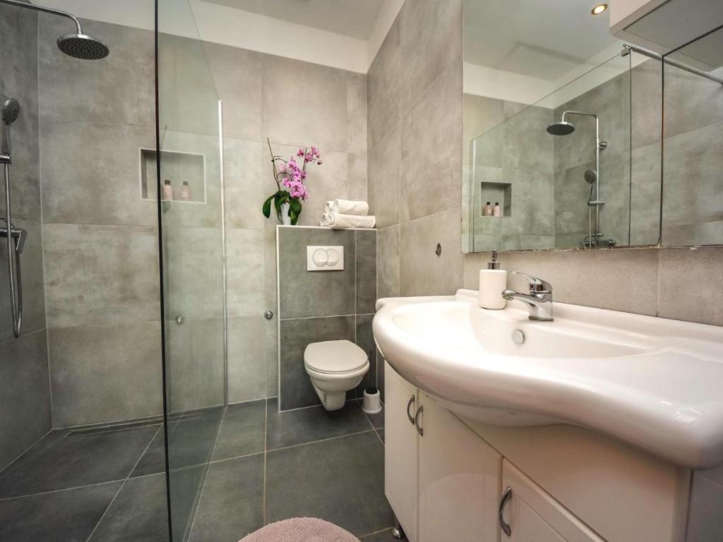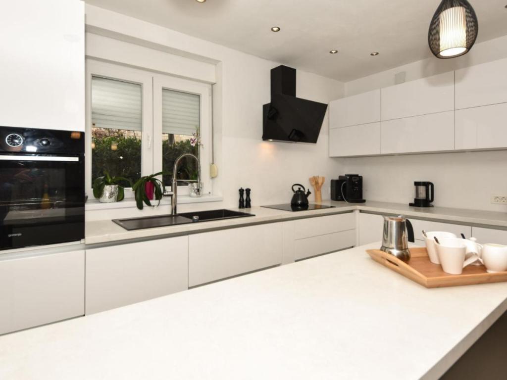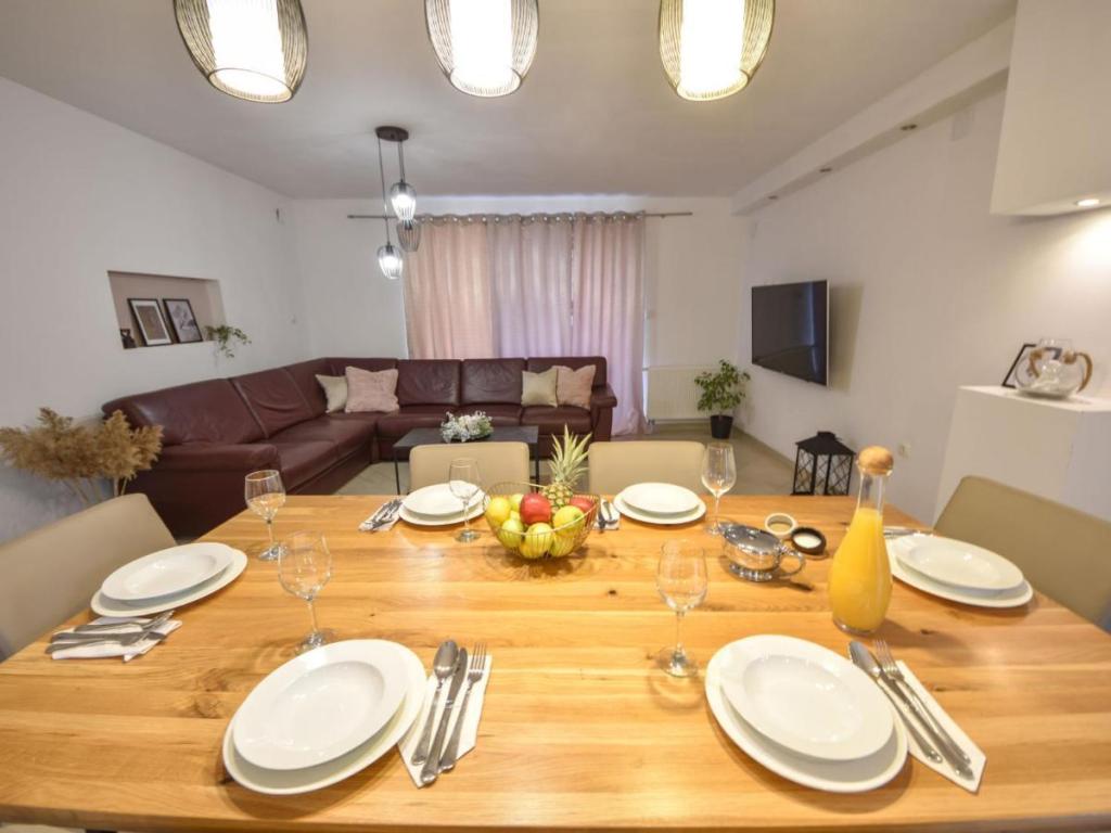 Villa Matino, casa indipendente su 2 piani. A 400 m dal centro di Ražanac, in posizione tranquilla, soleggiata e sopraelevata, a 440 m dal mare e dalla spiaggia. Ad uso privato: terreno di 500 m2 (recintato), piscina angolare (8 x 4 m, 32 m2, profondità 145 cm, disponibilità stagionale: 15 maggio - 15 ottobre) con scala interna. Doccia esterna, barbecue, manutenzione della piscina a cura del proprietario/giardiniere. In casa: accesso internet gratuito, lavatrice. Parcheggio per 3 auto adiacente alla casa, all'interno della proprietà. Il proprietario non accetta gruppi di bambini. L'intera casa è dotata di 4 condizionatori d'aria. La casa ha una superficie totale di 250 m2 su 2 piani. È composta da 2 appartamenti che vengono affittati insieme (ideali per gruppi perché dispongono di uno spazio separato/privacy, oltre a un'area comune per socializzare). 1 appartamento è più piccolo ed è composto da 2 camere da letto (ciascuna con un grande letto matrimoniale di 180x200 cm), 1 cucina, 1 sala da pranzo, 1 soggiorno, 1 bagno e 3 terrazze (2 con vista mare). Contiene una grande TV, internet gratuito in tutta la struttura, lavatrice