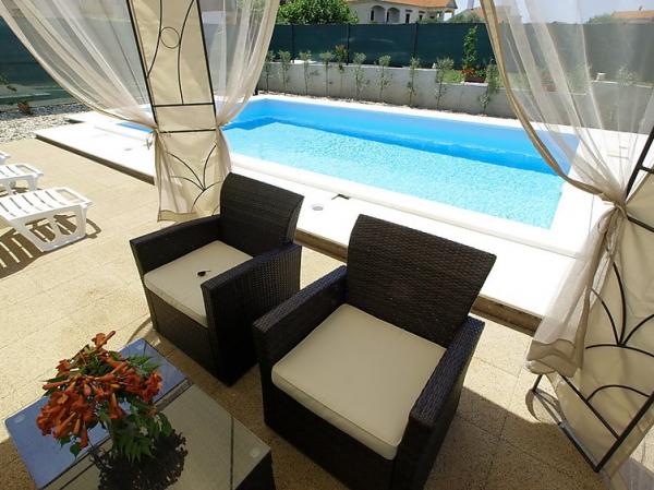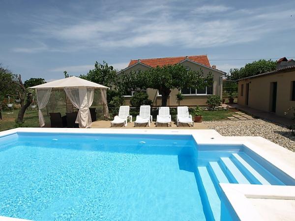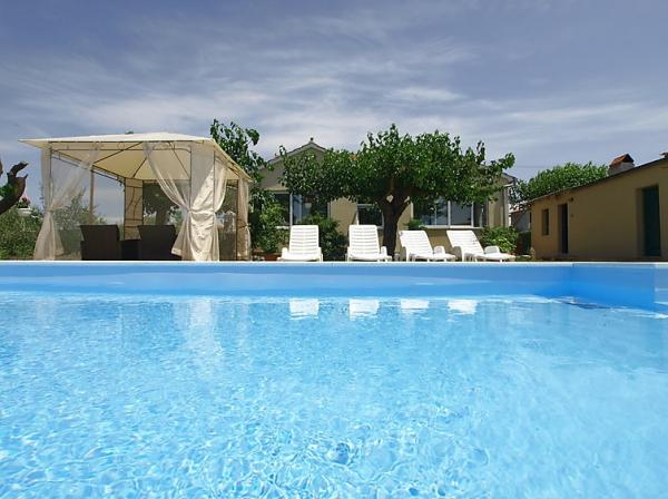 La famiglia di casa 3 locali 100 m2 con grill, grande giardino con prato e alberi di 1600 m2 e una piscina riscaldata misura 7 x 4 x 1,5 m. Parcheggio vicino alla casa piscina. Vicinanza a negozi e ristoranti 300 m, e la spiaggia di sabbia e ciottoli 800 m.