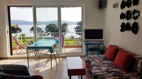 Casa completamente e modernamente attrezzata con 2 appartamenti separati e una cucina e un giardino in comune. Ogni appartamento ha una cucina, aria condizionata e una vista fenomenale sul mare. Ideale per due famiglie perché offre privacy, ma anche uno spazio per socializzare. La casa ha 3 bagni, lavastoviglie e lavatrice. Il giardino è spazioso e bellissimo. Un appartamento è 4 2 e l'altro 2 2. Parcheggio gratuito custodito per 2 auto. Nota: la casa non è staccata. Per i bambini nel giardino abbiamo un piccolo scivolo e un'altalena, e abbiamo una culla e una sedia di alimentazione.