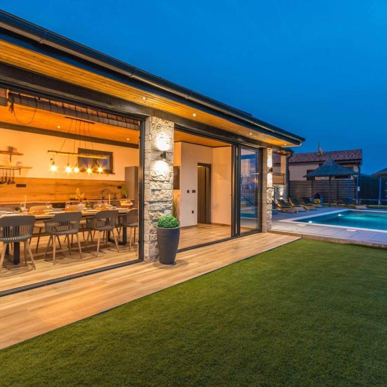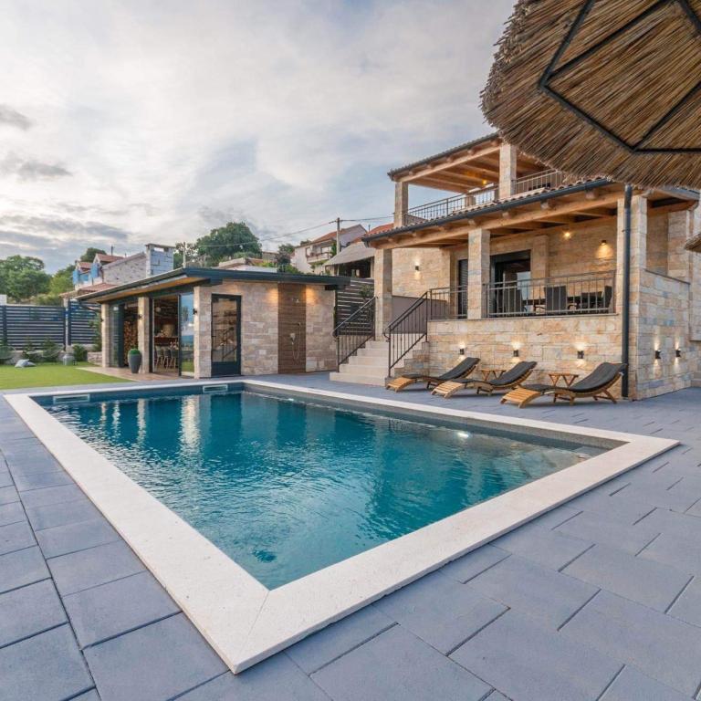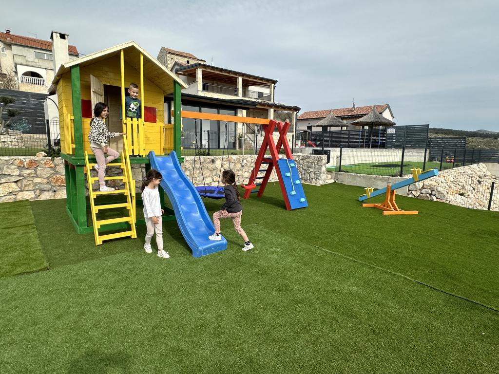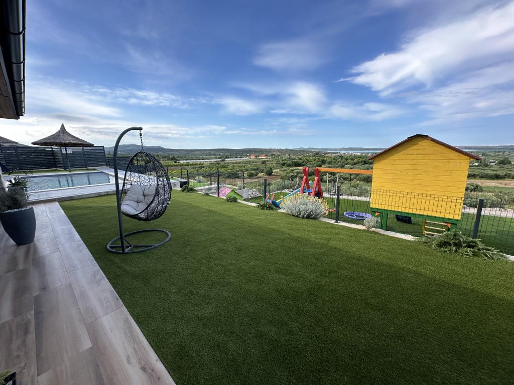 Villa La Vrana si trova in una splendida posizione vicino al Parco Naturale del Lago di Vrana. La posizione unica di questa proprietà vi lascerà senza fiato con la sua pittoresca vista sul lago e sul mare. Con i suoi 130 m², può ospitare 8 persone in 3 camere da letto arredate in stile moderno. Al primo piano della villa si trovano 2 camere da letto e un bagno con vasca. Al piano terra si trova un soggiorno lussuosamente arredato con una splendida vista sui dintorni, una cucina modernamente arredata e attrezzata con sala da pranzo. Nel soggiorno è presente un divano che può fungere da letto supplementare per 2 persone. Al piano terra si trovano anche una camera da letto con letto matrimoniale e un bagno con doccia. Nel cortile della villa si trova una piscina di 8x4 m riscaldata in bassa e alta stagione, con lettini prendisole e teli da piscina a disposizione. Parcheggio gratuito, una stazione di ricarica elettrica per auto e un ampio parco giochi per bambini all'interno della villa. Accanto alla villa potrete rilassarvi e preparare deliziosi pasti nella cucina estiva con barbecue completamente attrezzato.