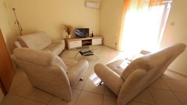 Completamente attrezzata villa composta da due livelli, ogni livello ha un separato e 120m2. È possibile affittare un prezzo minimo per notte è di 70EUR. . La casa dispone di un ampio giardino dove c'è un barbecue, doccia esterna, un posto per riposare, nonché un parcheggio e garage. Vicino alla casa si trova un ristorante, bar, market, e dal mare dista solo 2 km. In una posizione estremamente tranquilla ideale per una vacanza.